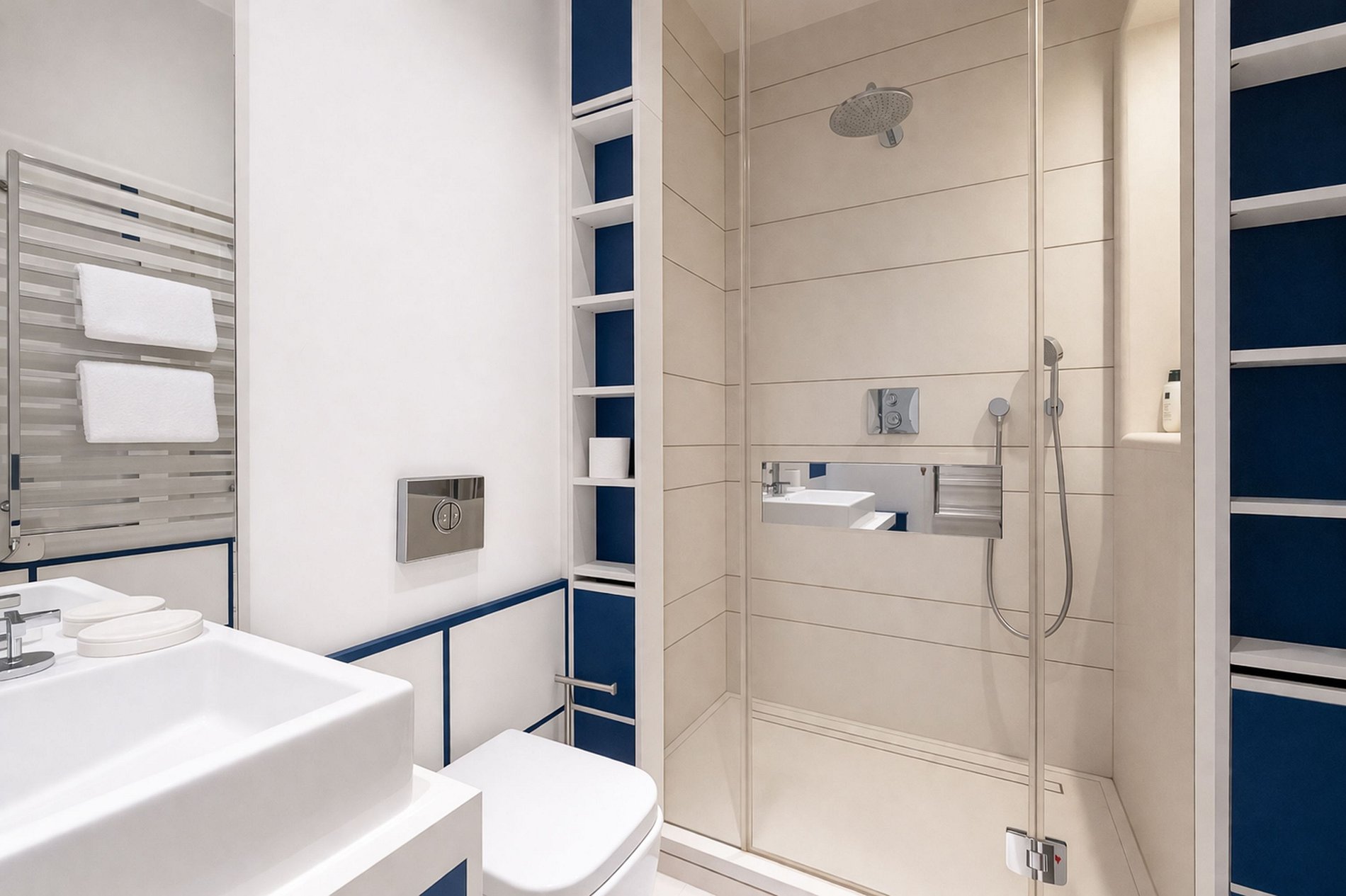 Diseñado con comodidad y sofisticación, el apartamento cuenta con un gran salón de recepción, una acogedora sala de TV y tres elegantes dormitorios en suite, cada uno de ellos garantizando absoluta privacidad y tranquilidad. La suite principal destaca por su amplitud e incluye un espacioso baño equipado con una gran ducha a ras de suelo y una bañera, creando un verdadero refugio privado.
