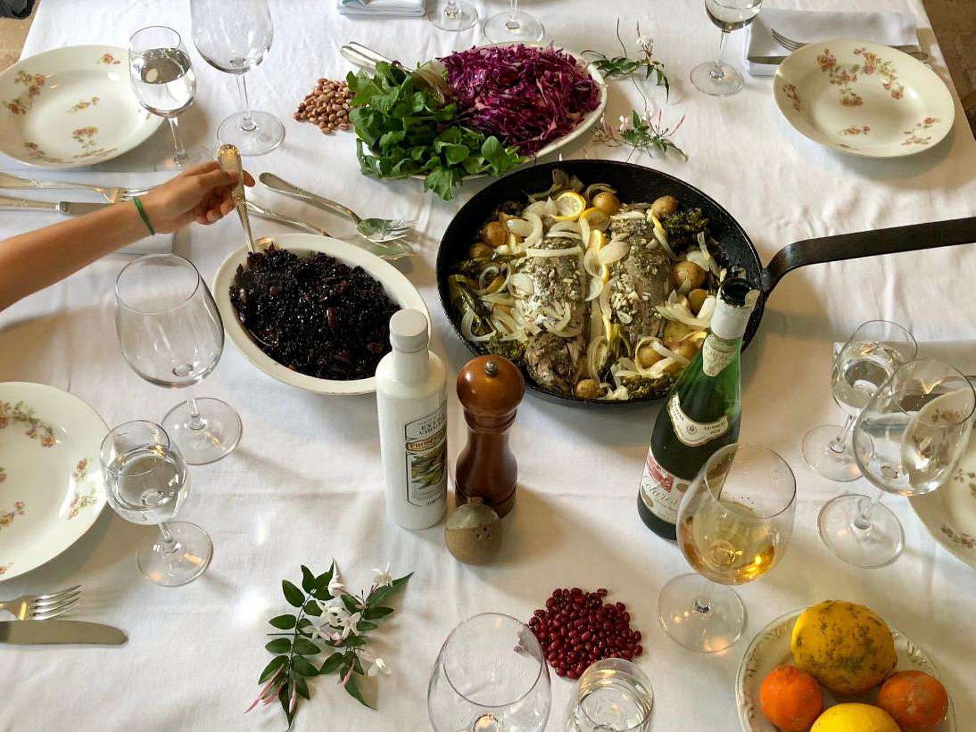 Pensión completa con productos orgánicos y caseros de la finca: desayuno, comida y cena, con presentación clásica.