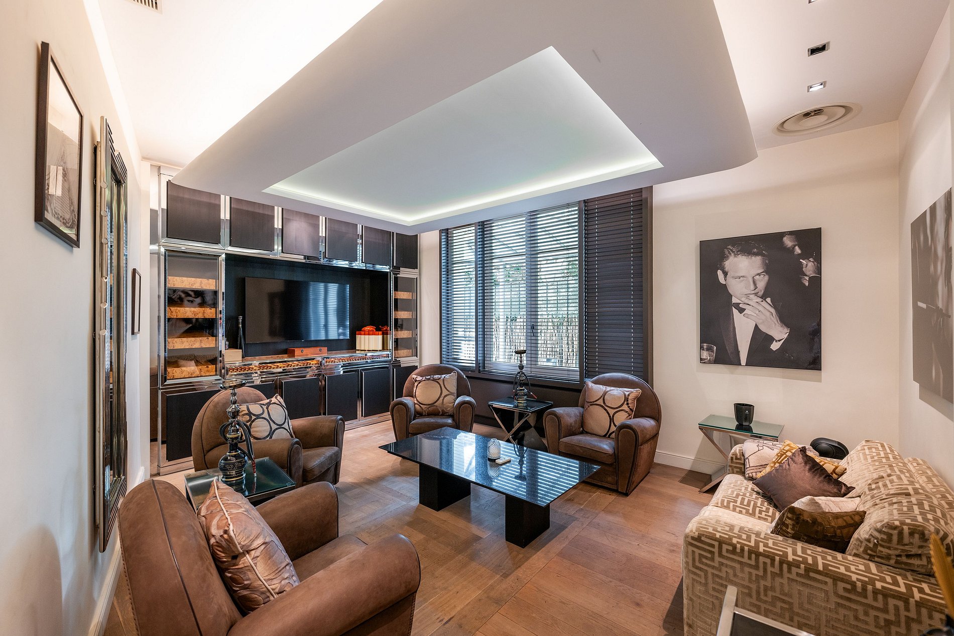 Esta grandiosa mansión está totalmente climatizada para ofrecer comodidad durante todo el año. Los entusiastas del fitness apreciarán la presencia de dos gimnasios profesionales, mientras que los aficionados a los cigarros disfrutarán del humidificador dedicado.