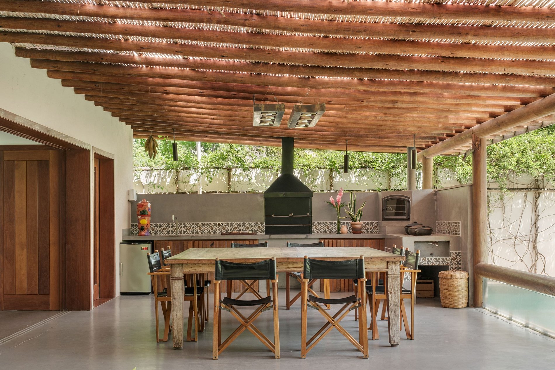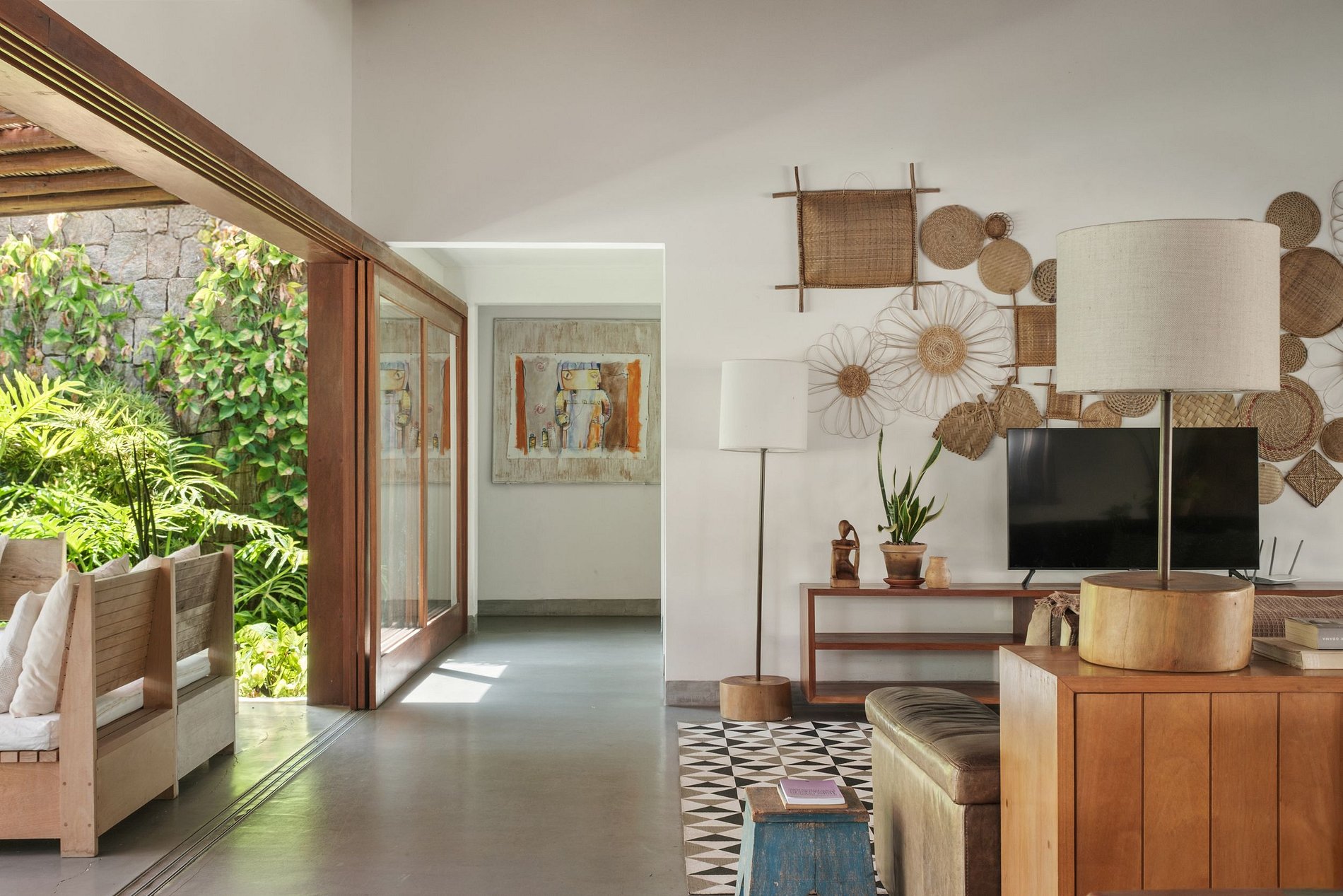 El amplio y diáfano salón está equipado con TV de pantalla plana, sistema de cine en casa y climatizado para ofrecer aún más comodidad en los momentos de ocio y descanso. La decoración de la casa trae referencias a la cultura local y pura inmersión en la naturaleza.