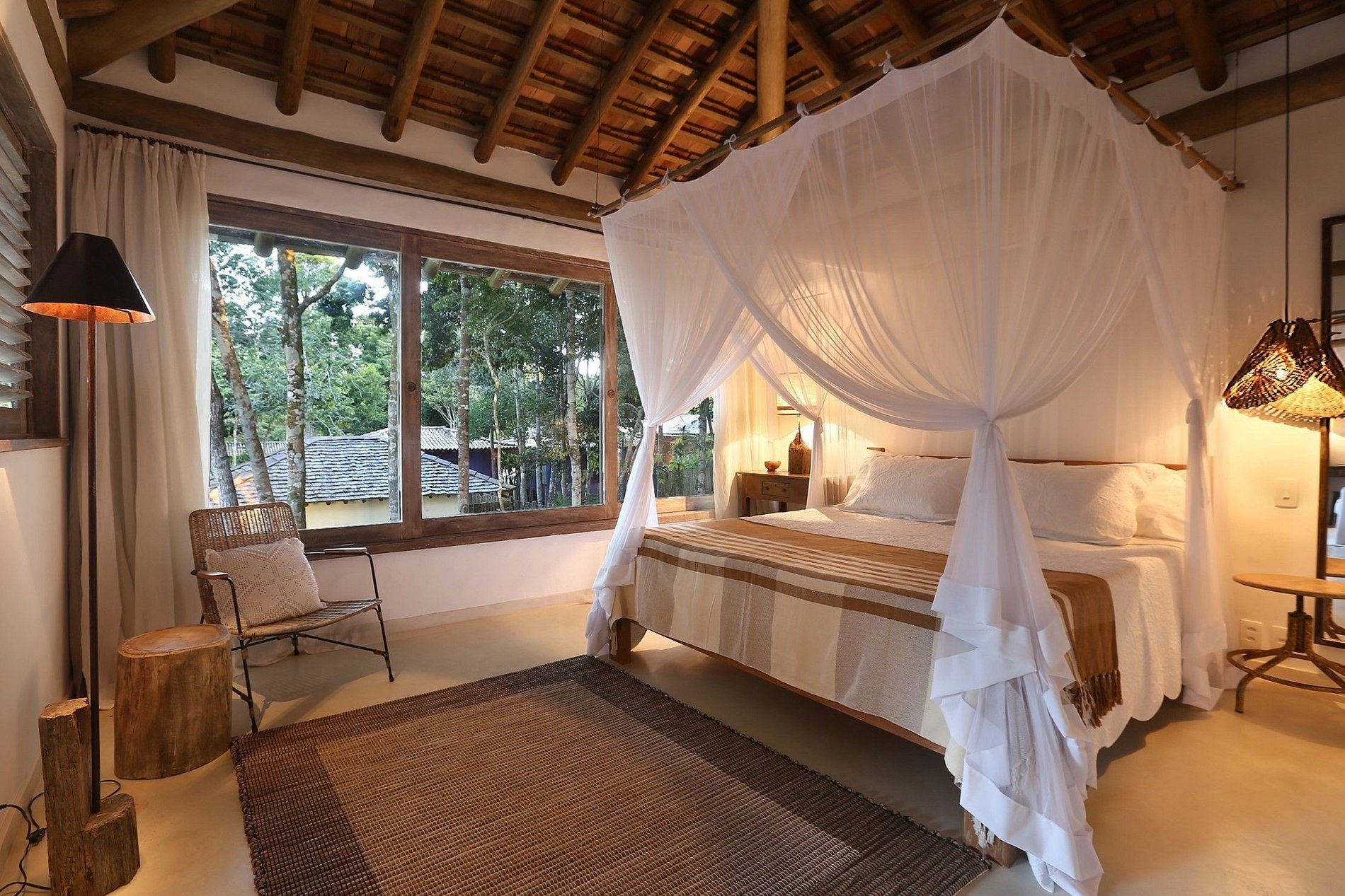 Suite 03: 1 cama king, mosquitero, aire acondicionado, terraza, vistas al jardín y piscina.