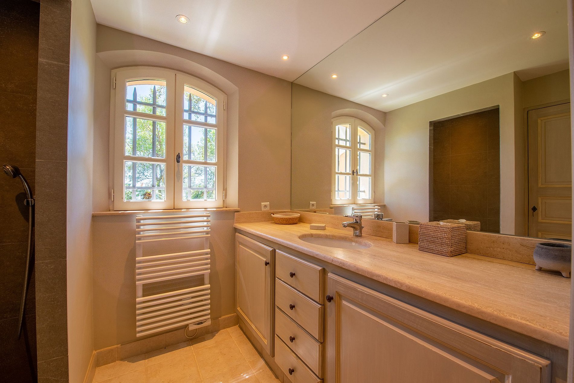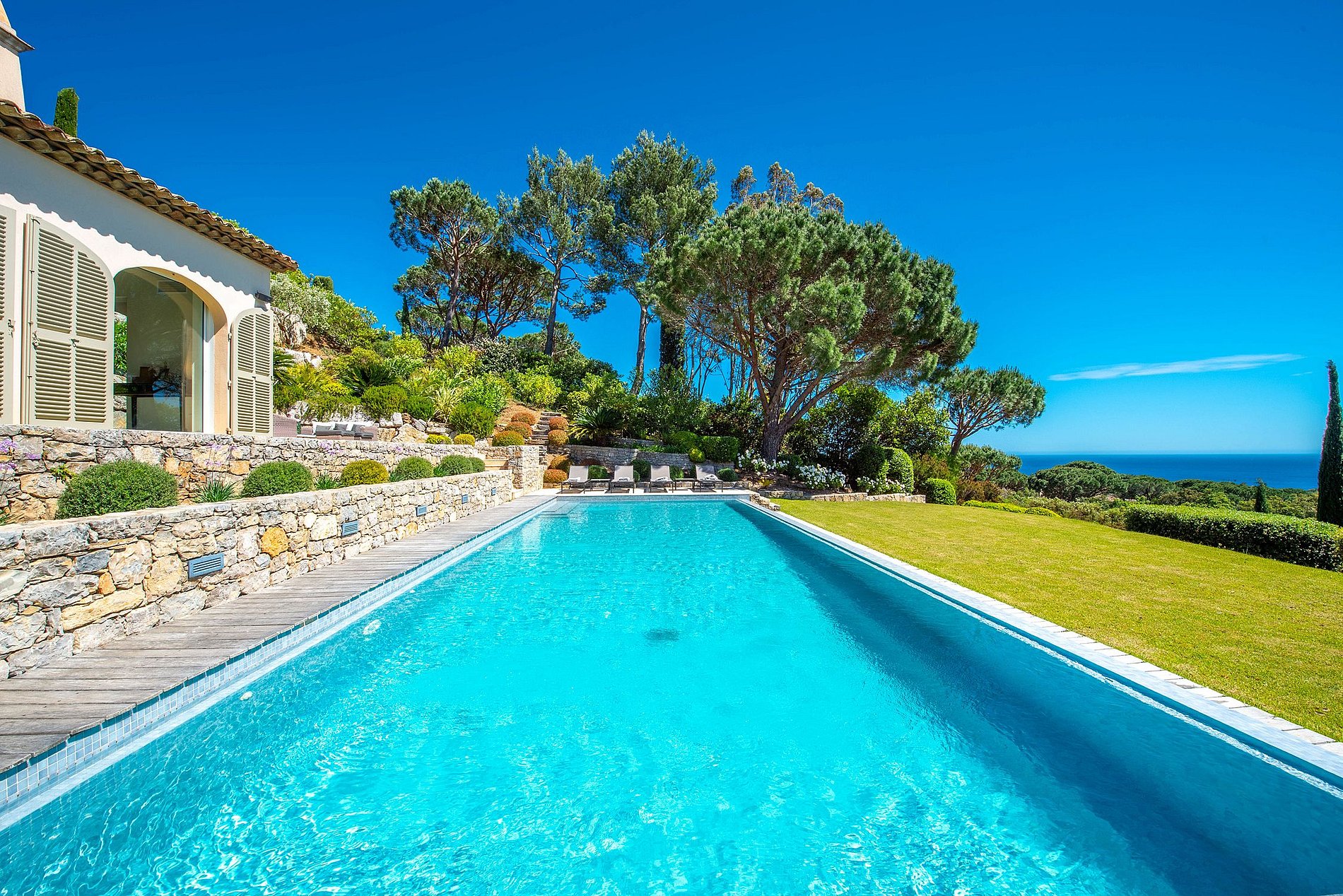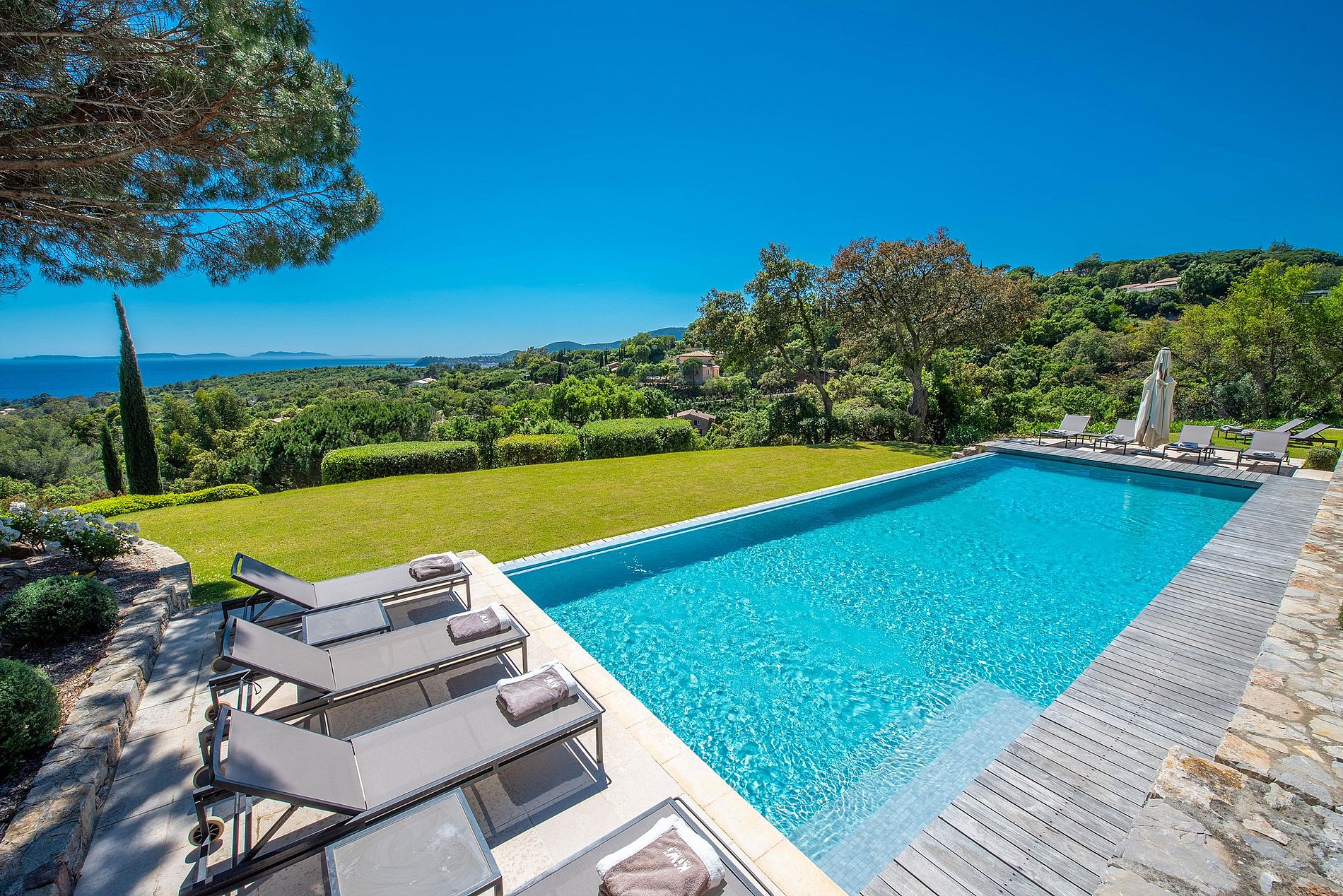 Situada en las alturas de La Croix-Valmer, con una superficie de 400 m2, esta muy espaciosa villa tiene tres plantas con dormitorios y una gran zona común.
