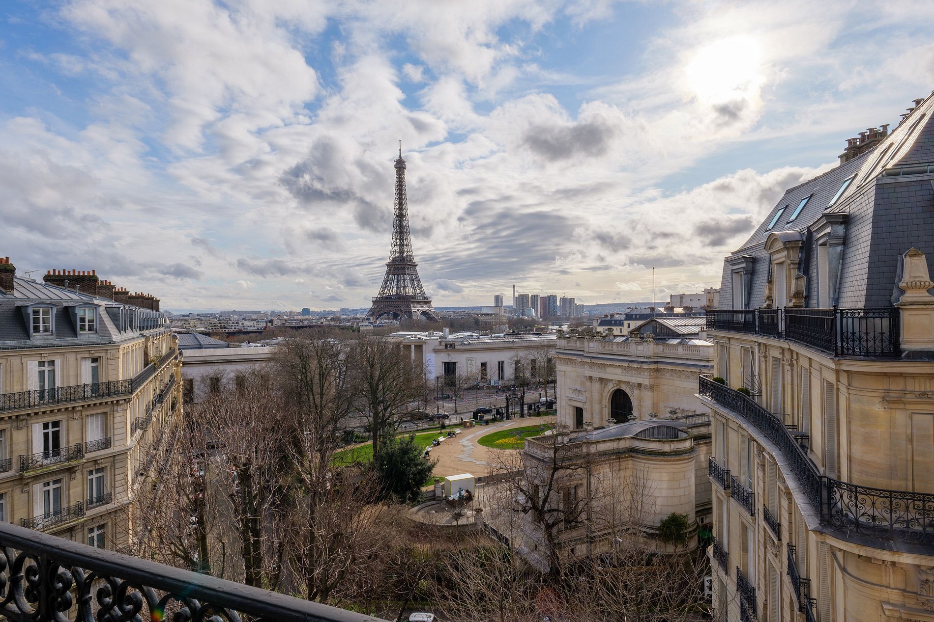 Descubre este impresionante apartamento de 180 metros cuadrados situado en el quinto piso de un edificio en el distrito de Chaillot, que ofrece vistas impresionantes de la icónica Torre Eiffel.