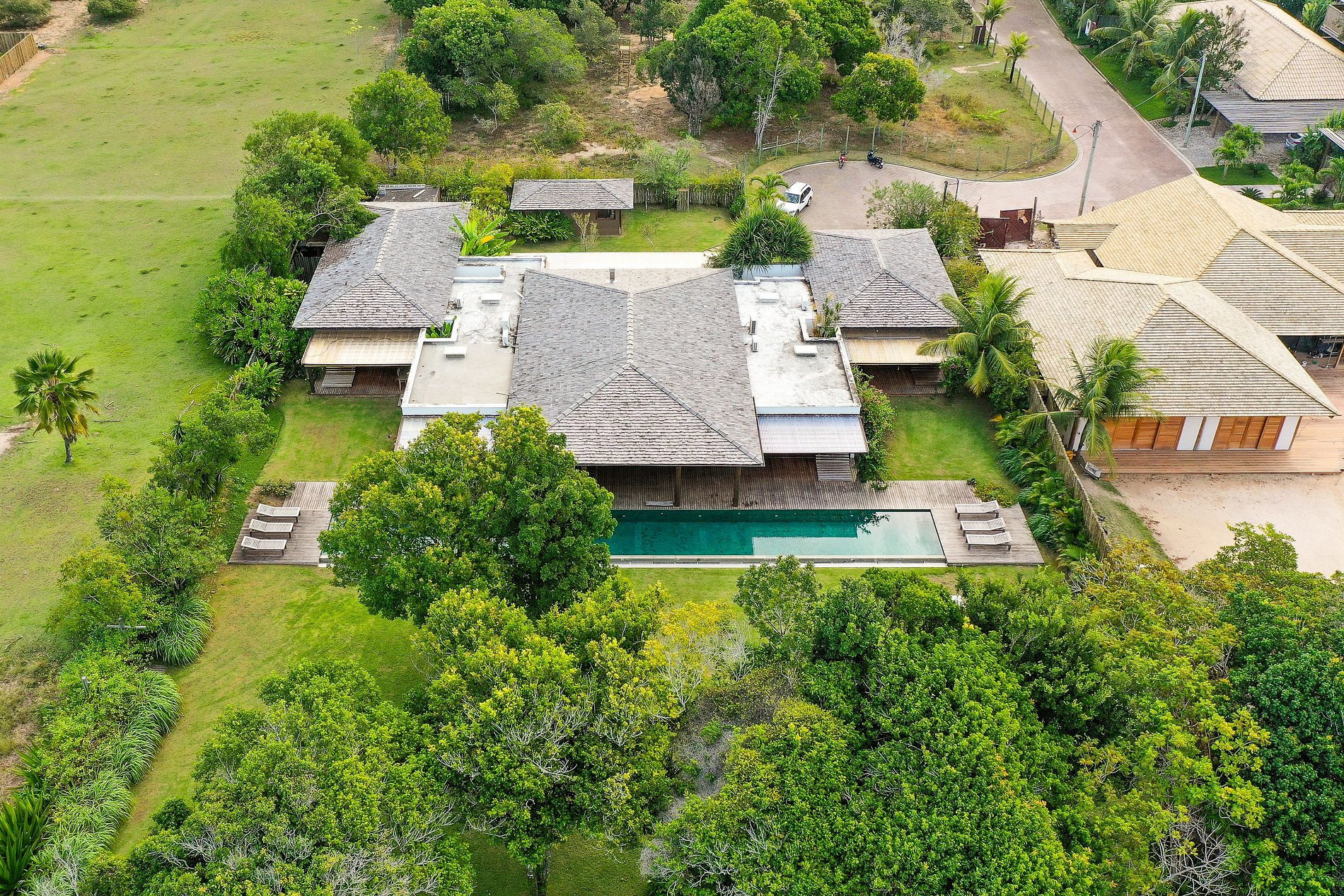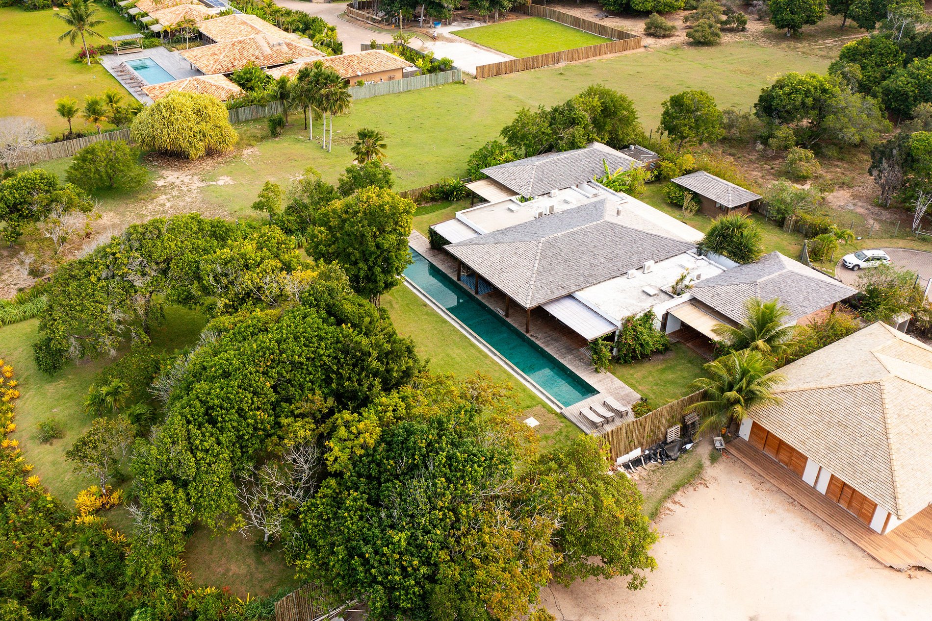 Ubicada en el condominio Altos de Trancoso, una reserva con 95,000 metros cuadrados de plazas y áreas verdes, hermosos miradores y acceso directo a la playa de Coqueiros, esta acogedora casa en alquiler en Bahía ofrece todo el confort y la comodidad necesarios para vivir las vacaciones perfectas.
