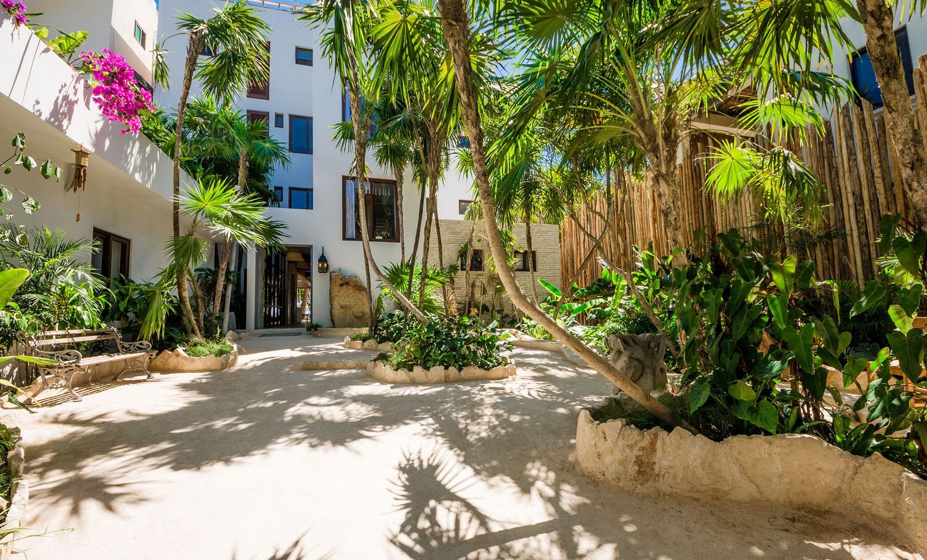 La Bahía de Soliman se encuentra justo al norte del pueblo de Tulum. El área que rodea la Bahía de Soliman es una comunidad aislada frente a la playa compuesta por villas privadas y casas de vacaciones prácticamente sin desarrollo comercial. En esta franja de playa escondida, encontrarás esta villa escondida entre la bahía y la selva de manglar.