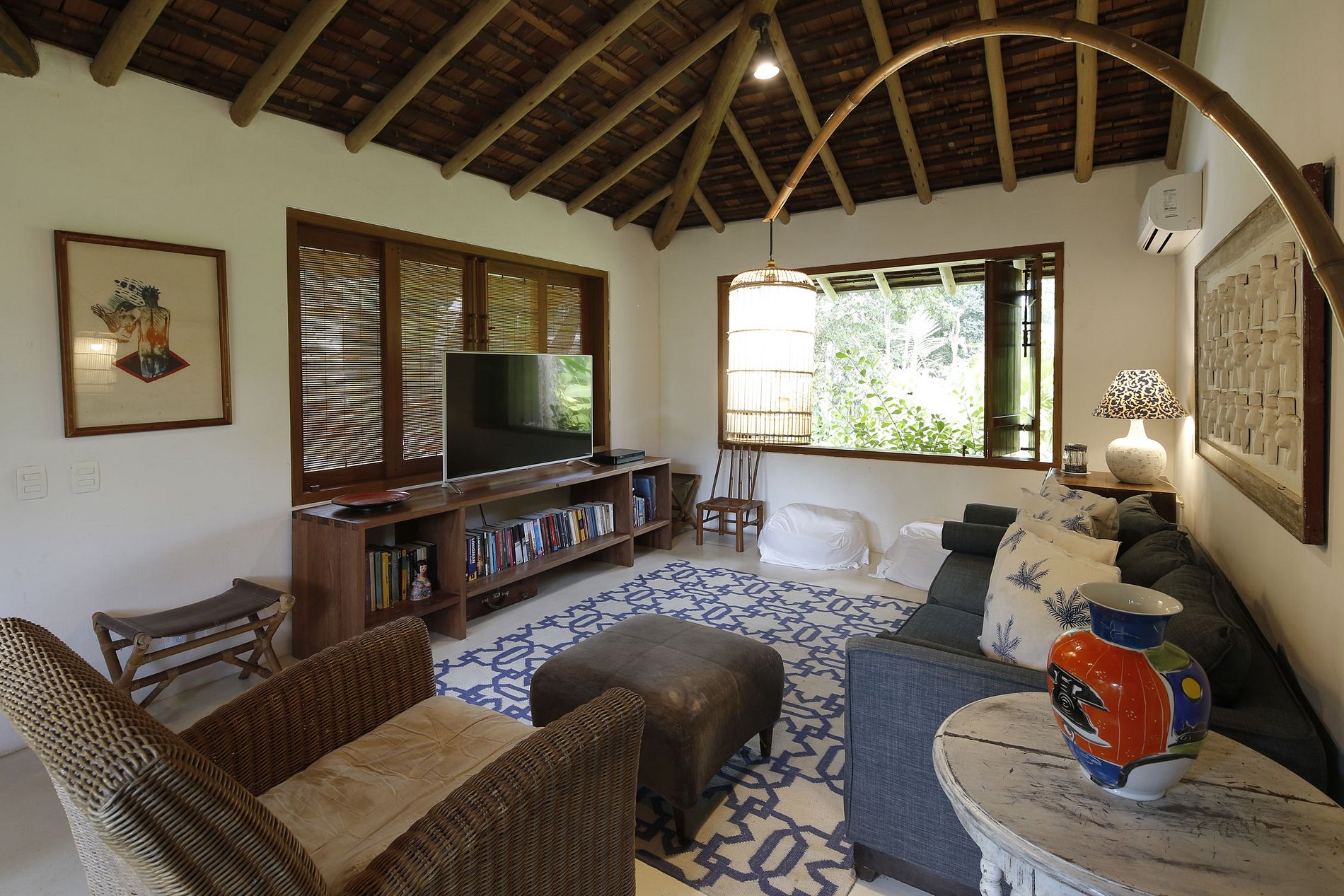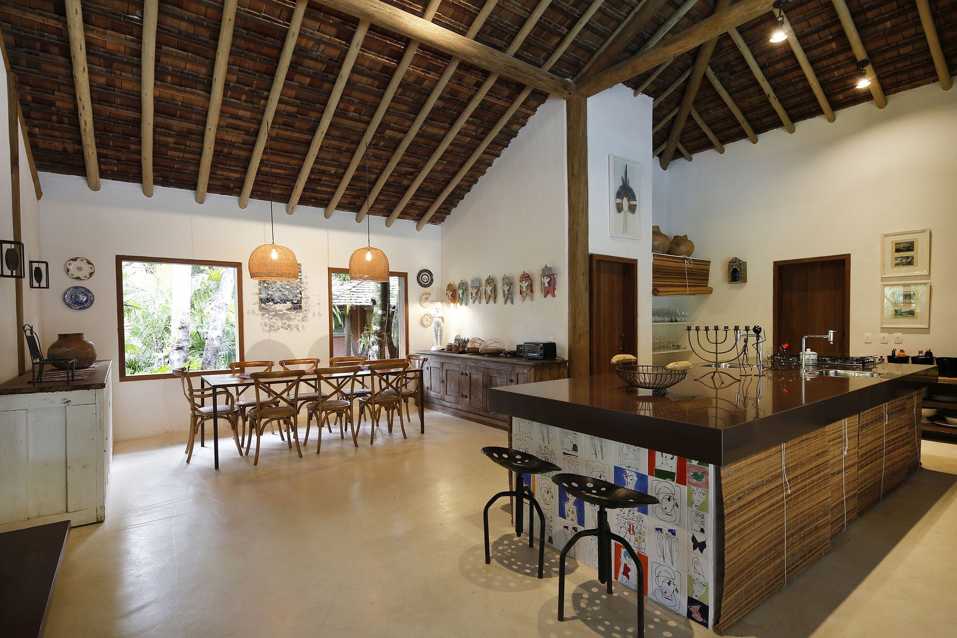 Linda casa de 3 suites en el condominio Altos de Trancoso.Jardín tropical agradable con una hermosa piscina, una pergola, un área con juguetes para los niños. En el balcón, una mesa, un bar y su barbacoa, ofrece un espacio cómodo para las bellas tardes soleadas.