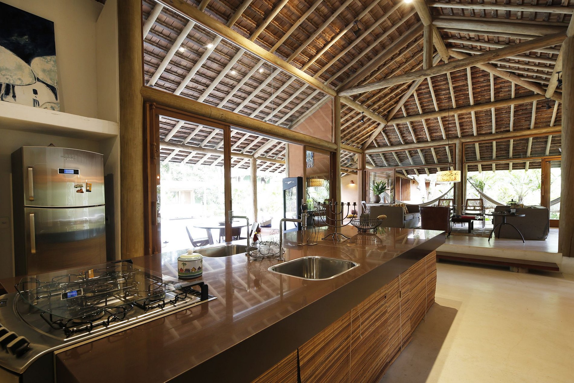 Linda casa de 3 suites en el condominio Altos de Trancoso.Jardín tropical agradable con una hermosa piscina, una pergola, un área con juguetes para los niños. En el balcón, una mesa, un bar y su barbacoa, ofrece un espacio cómodo para las bellas tardes soleadas.