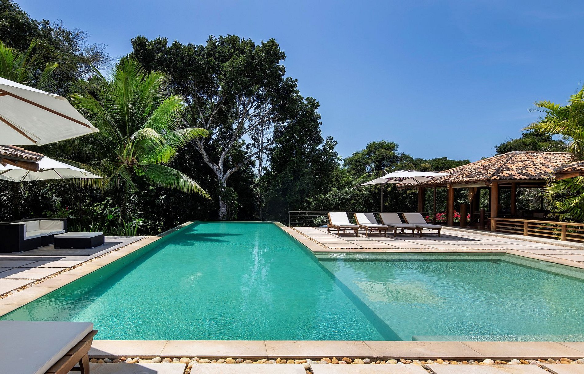 La lujosa residencia de vacaciones se encuentra a las afueras de Trancoso, una pequeña ciudad colonial soñadora en la costa de Bahía que está difundiendo el encanto de la vida bahiana y contribuirá a una experiencia vacacional inolvidable.