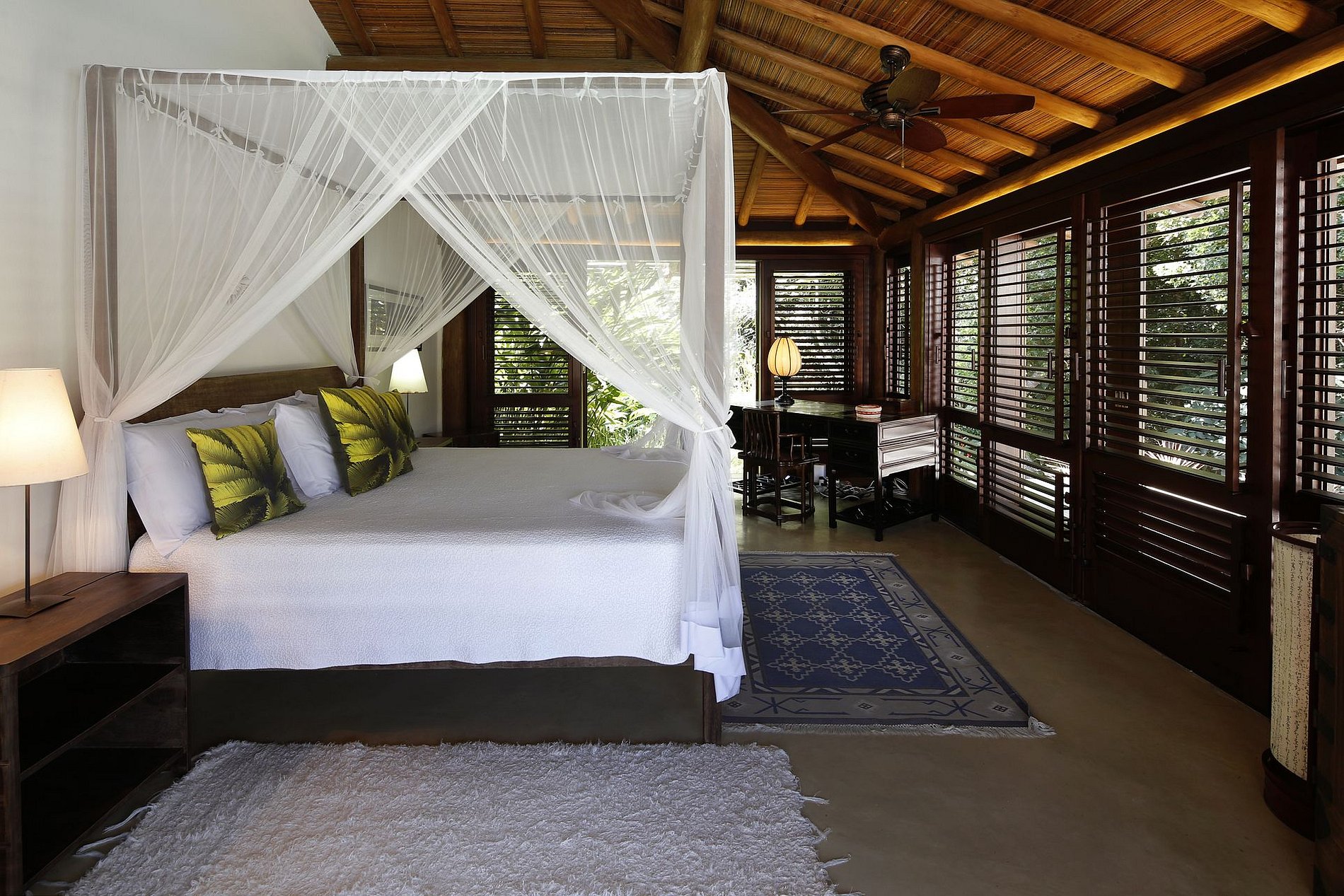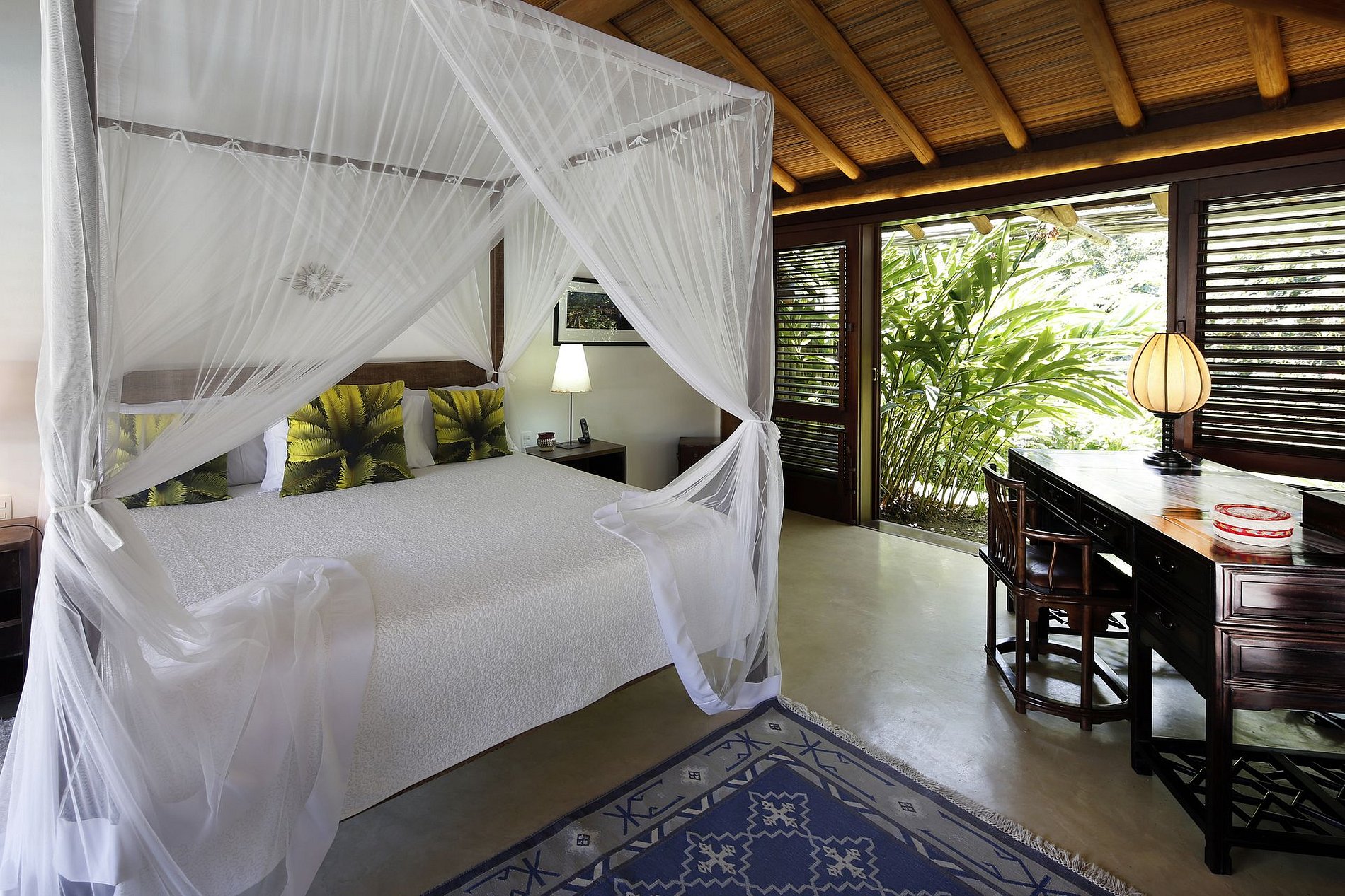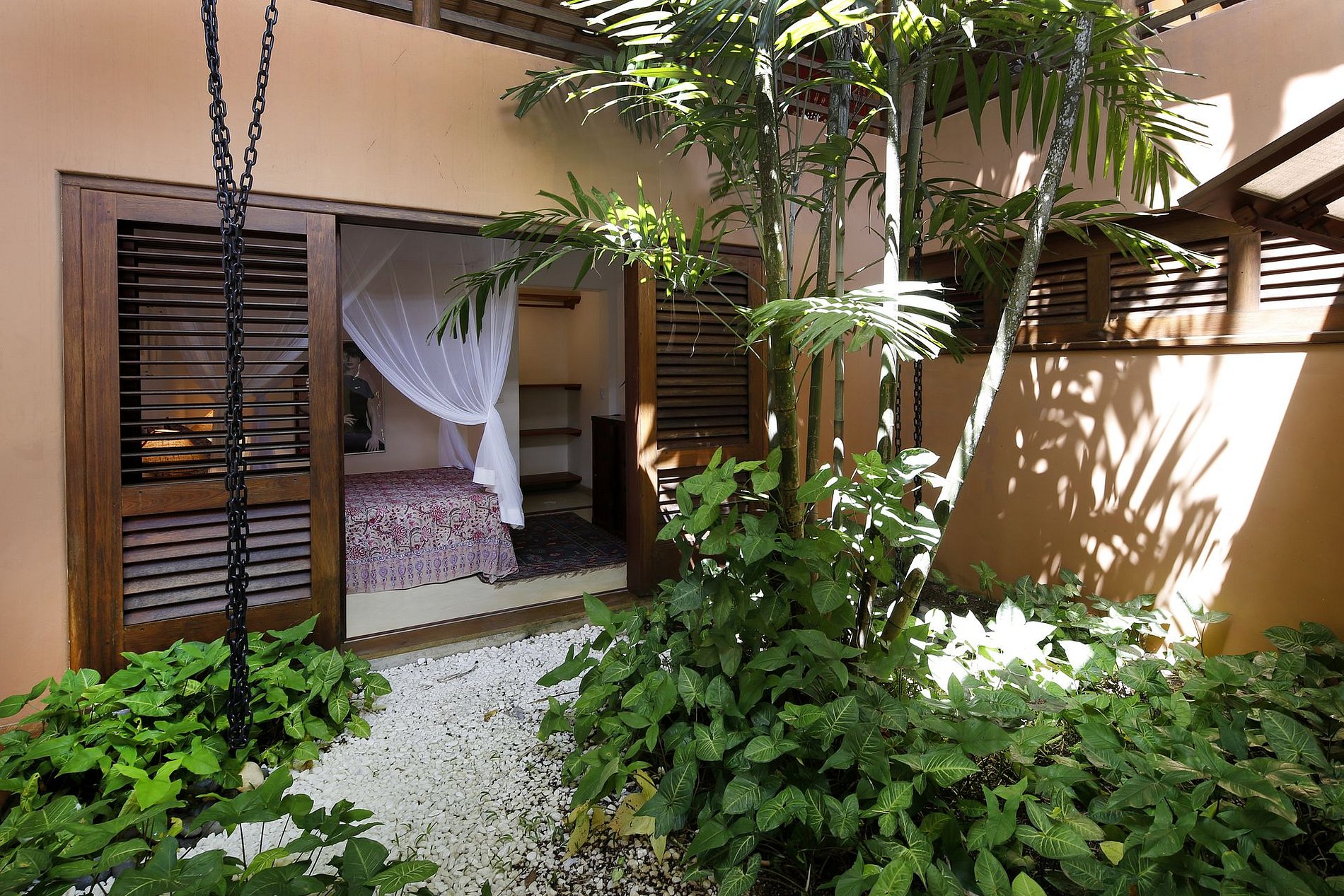 Las 6 suites de la propiedad vienen con baños en suite y aire acondicionado. En el master-suite encontrará un jacuzzi. Cada suite tiene una hermosa vista diferente lista para sus huéspedes privilegiados, por ejemplo, para el jardín, la piscina y los paisajes de Mata Atlântica.