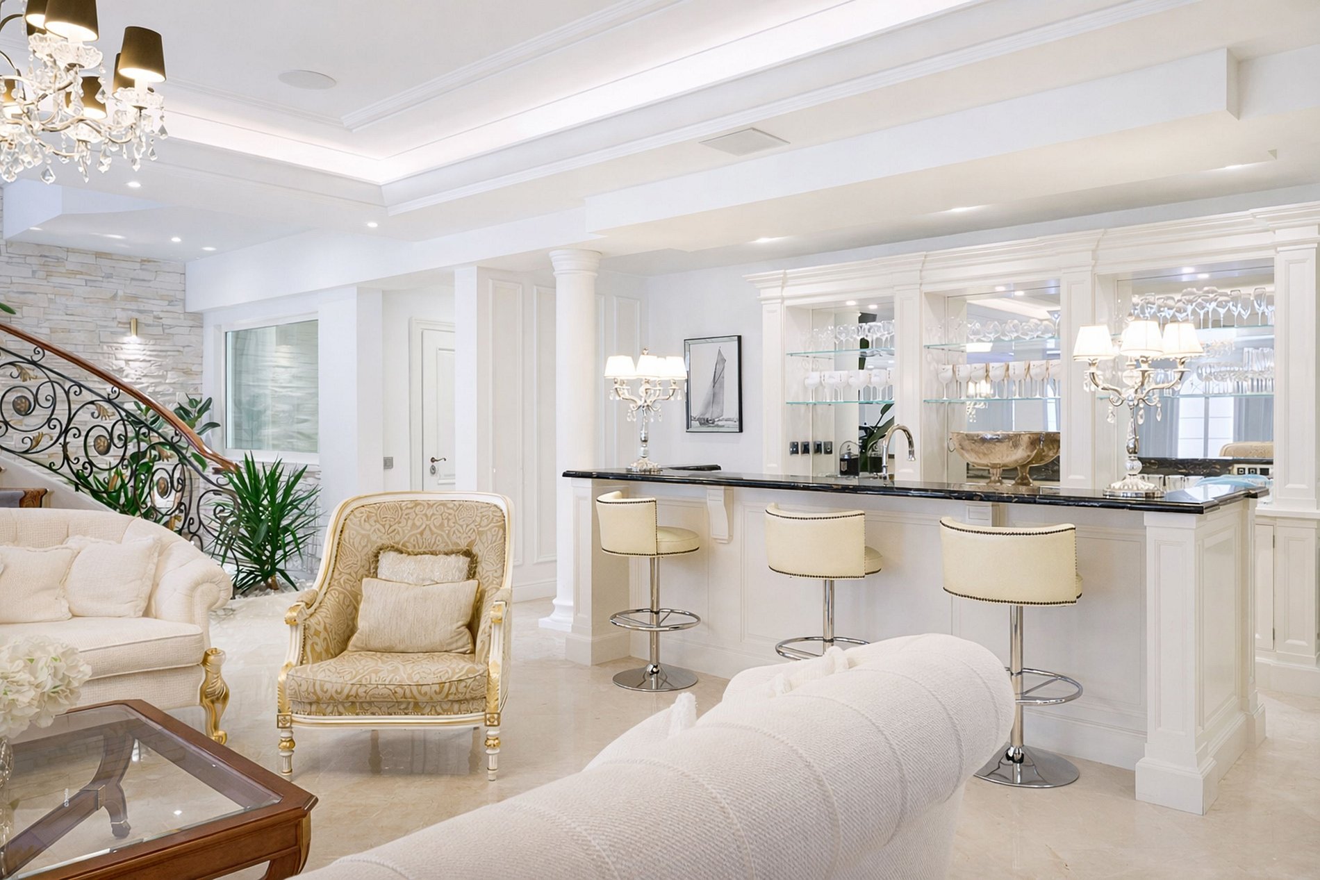 Desde el momento en que se ingresa, se marca el tono: volúmenes espectaculares, una majestuosa escalera de hierro forjado, nobles suelos de mármol, impresionantes lámparas de araña y acabados exquisitos en cada detalle.