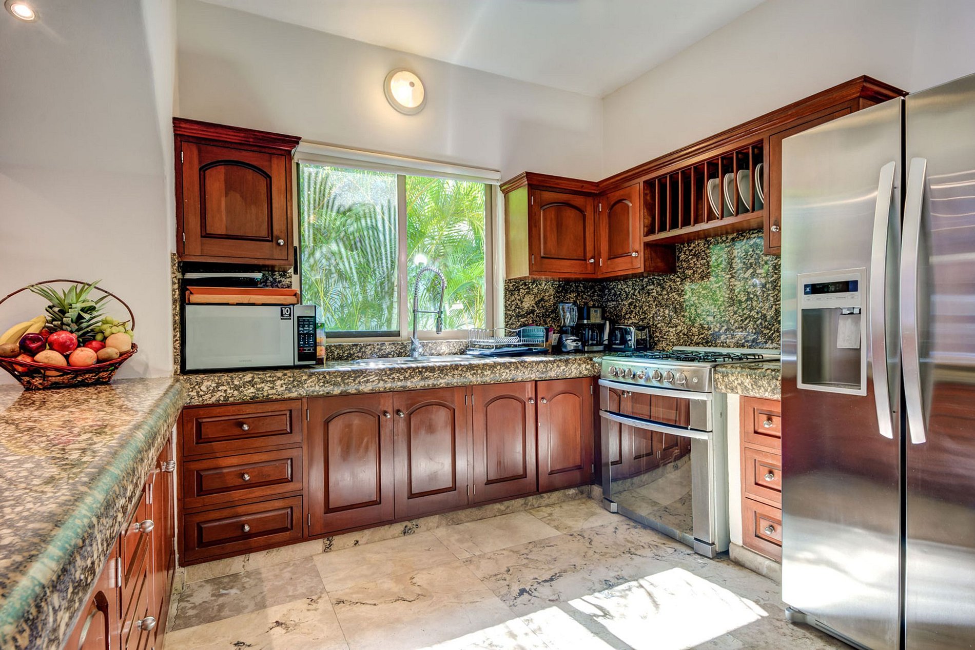 El estilo de vida de palapa y la arquitectura de vanguardia dejan la casa sintiéndose elegante y tropical con un toque de vanguardia. Relájese en los sofás de cuero blanco o deleite con estilo en el comedor para 8 personas junto a la magnífica cocina. Las paredes de ladrillo blanco en la sala y el comedor completan los temas de minimalismo y diseño vanguardista. La cocina totalmente equipada incluye una barra de desayuno y es perfecta para el genio culinario del grupo.