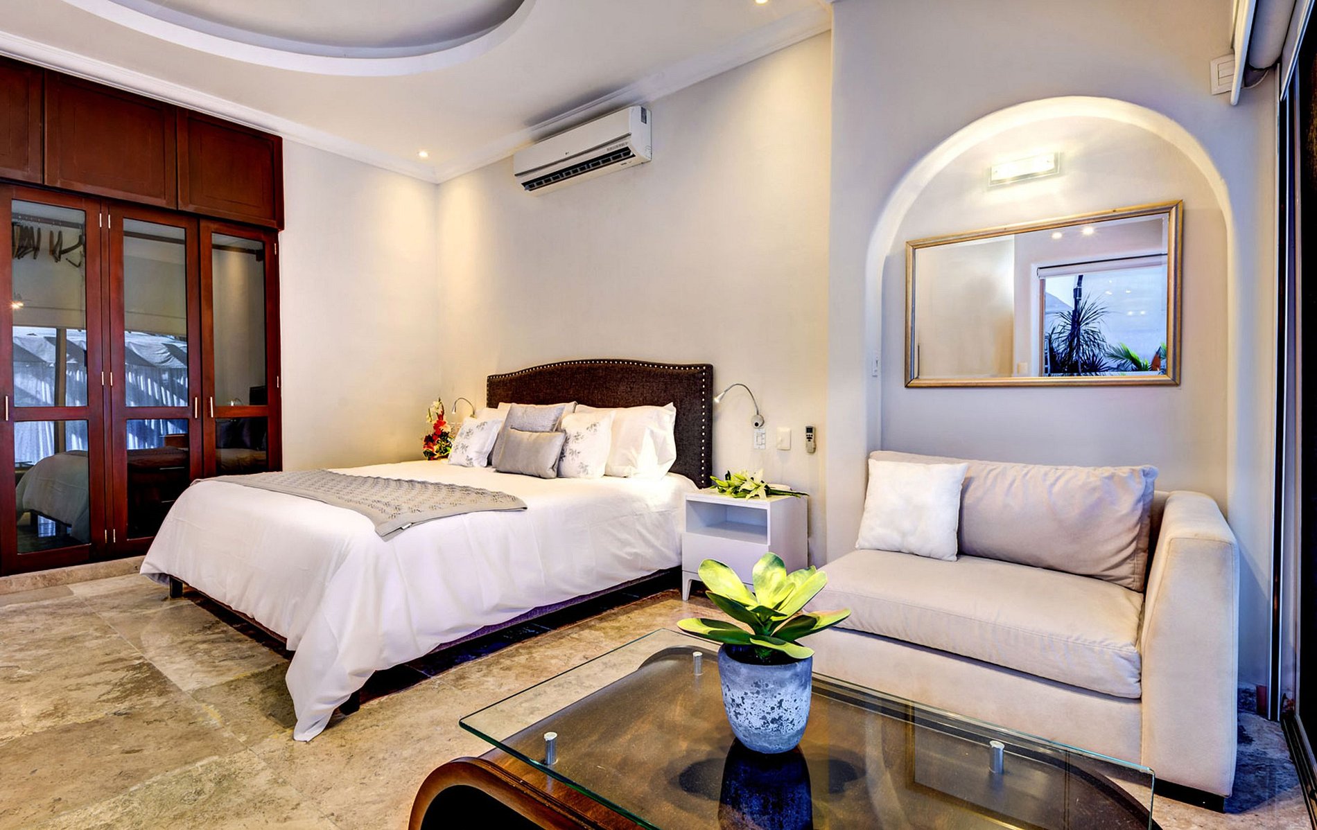 Cama king size, aire acondicionado, ventilador de techo, baño privado, secador de cabello, vista a la piscina, caja de seguridad, TV con canales Sky, artículos de tocador, acceso Wifi, pantalla de ventana
