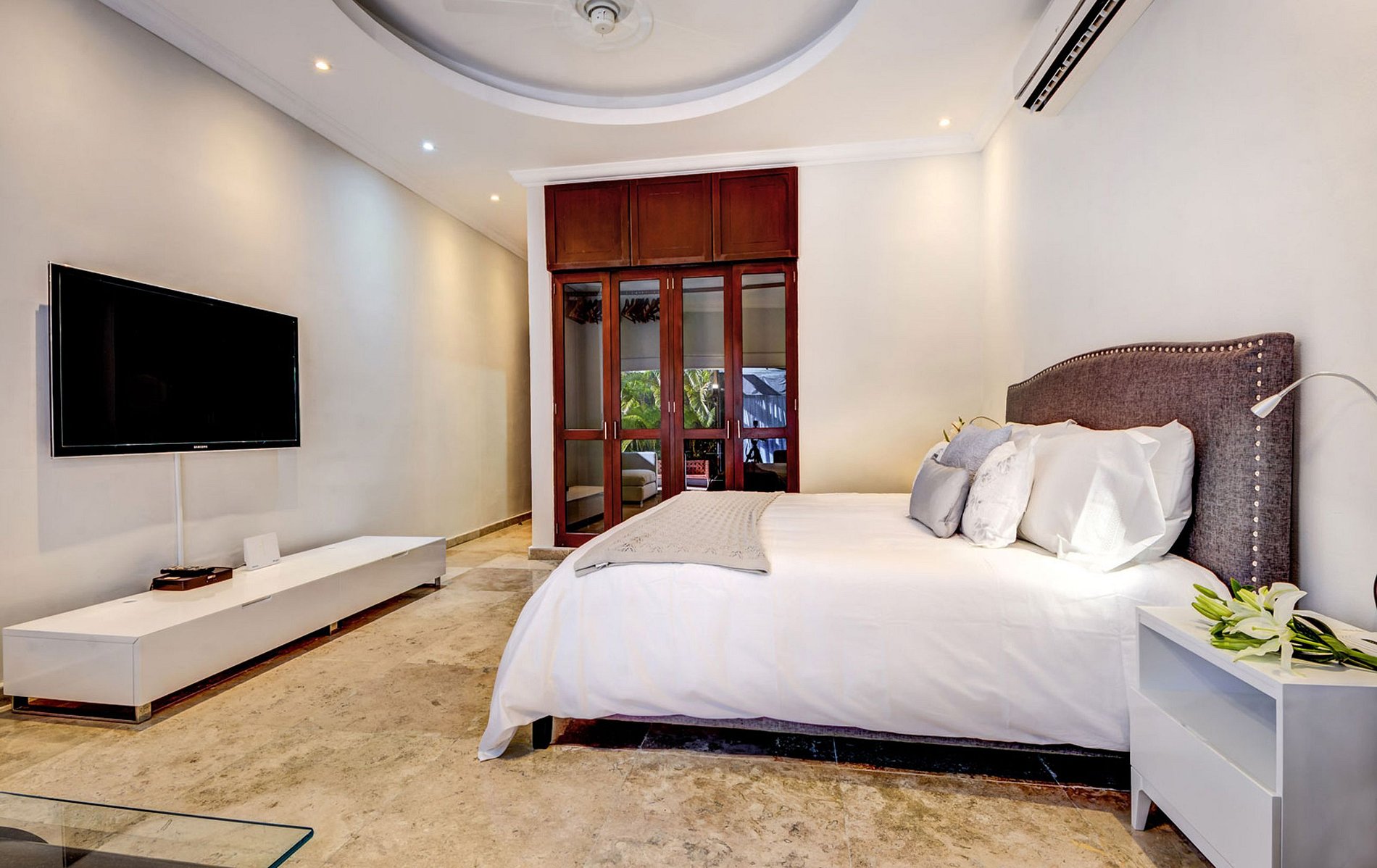 Con un total de 5 habitaciones, esta villa puede alojar hasta 10 personas. Disfrute del dormitorio principal con cama king-size, baño privado con ducha, aire acondicionado, vista al jardín y Sky TV. Disfrute de un oasis tropical con nada más que la fresca brisa del mar que le hace cosquillas en la punta de su cabello.