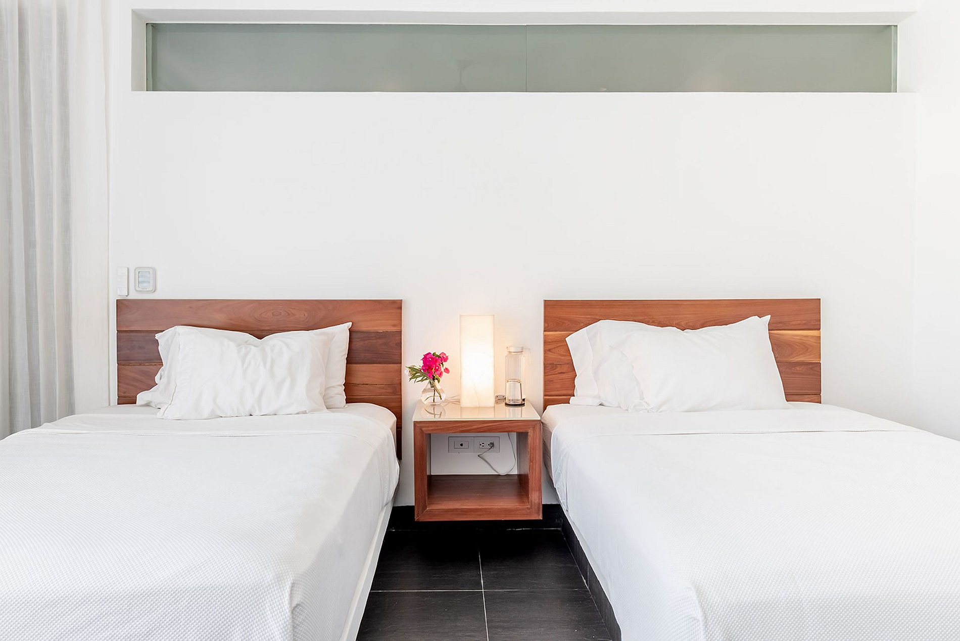 2 camas dobles, aire acondicionado, ventilador de techo, baño privado con ducha, acceso wifi, mampara de ventana