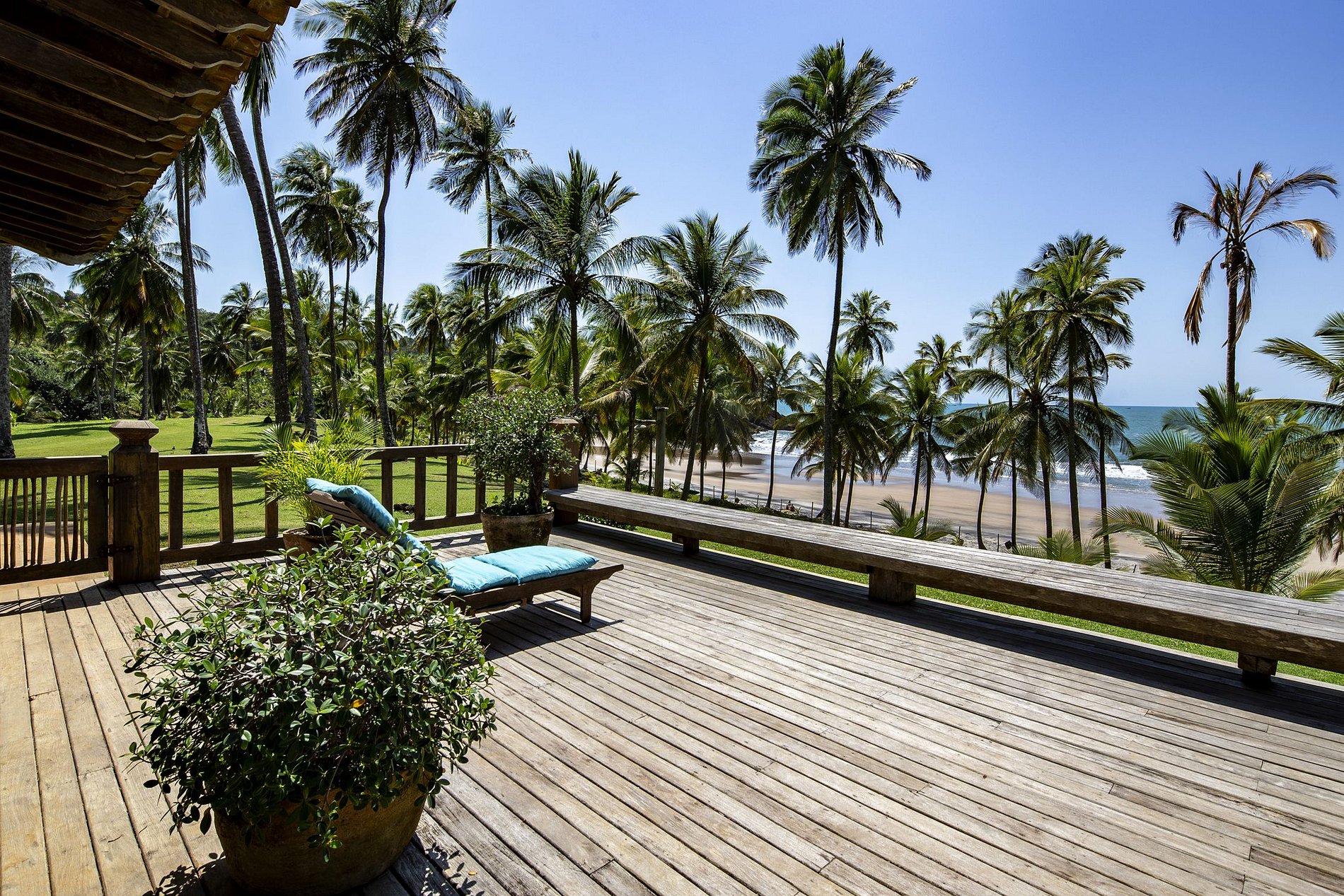 Esta increíble propiedad es el lugar perfecto para desconectarse del resto del mundo. No importa en qué punto cardinal esté mirando, no verá ningún signo de civilización, solo el asombro y los paisajes únicos de Bahía. La villa de lujo es la única casa en una playa paradisíaca de 500 metros. Una hermosa selva tropical preservada con cientos de cocoteros y un río rodean las inmensas 150 hectáreas de la propiedad.