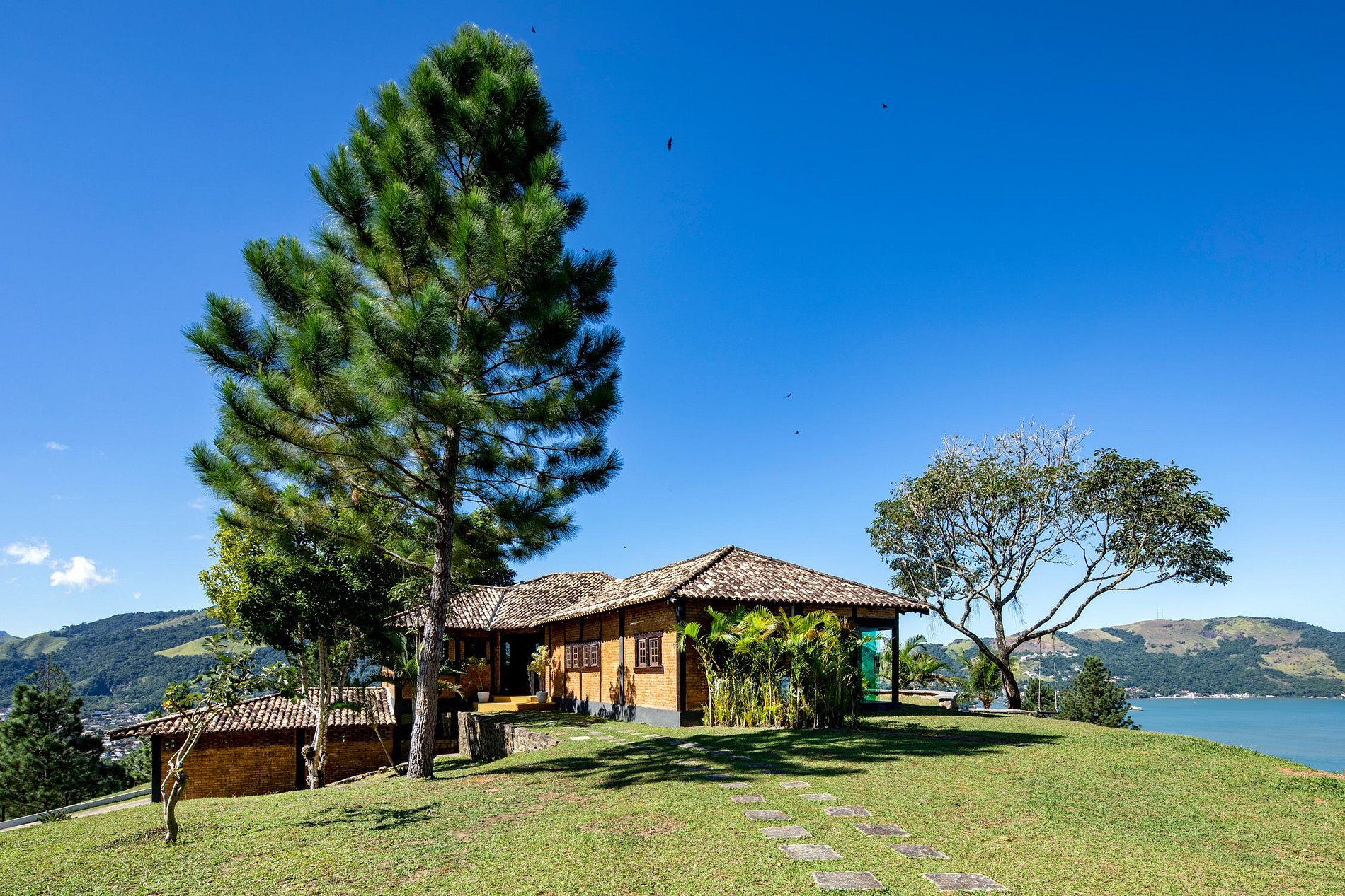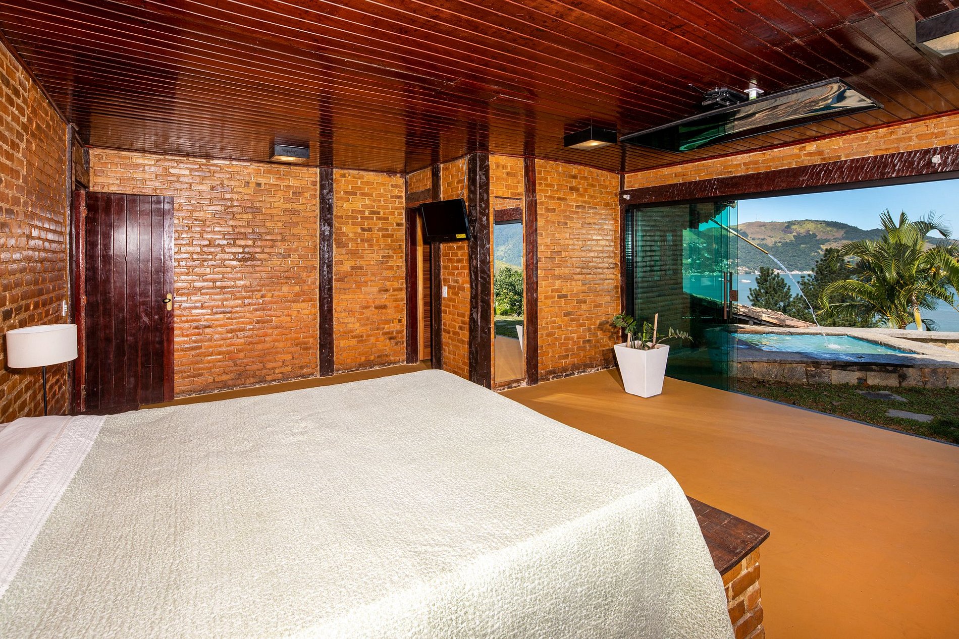 Podrá bañarse en la gran piscina mientras disfruta de una increíble vista de la bahía de Mangaratiba.