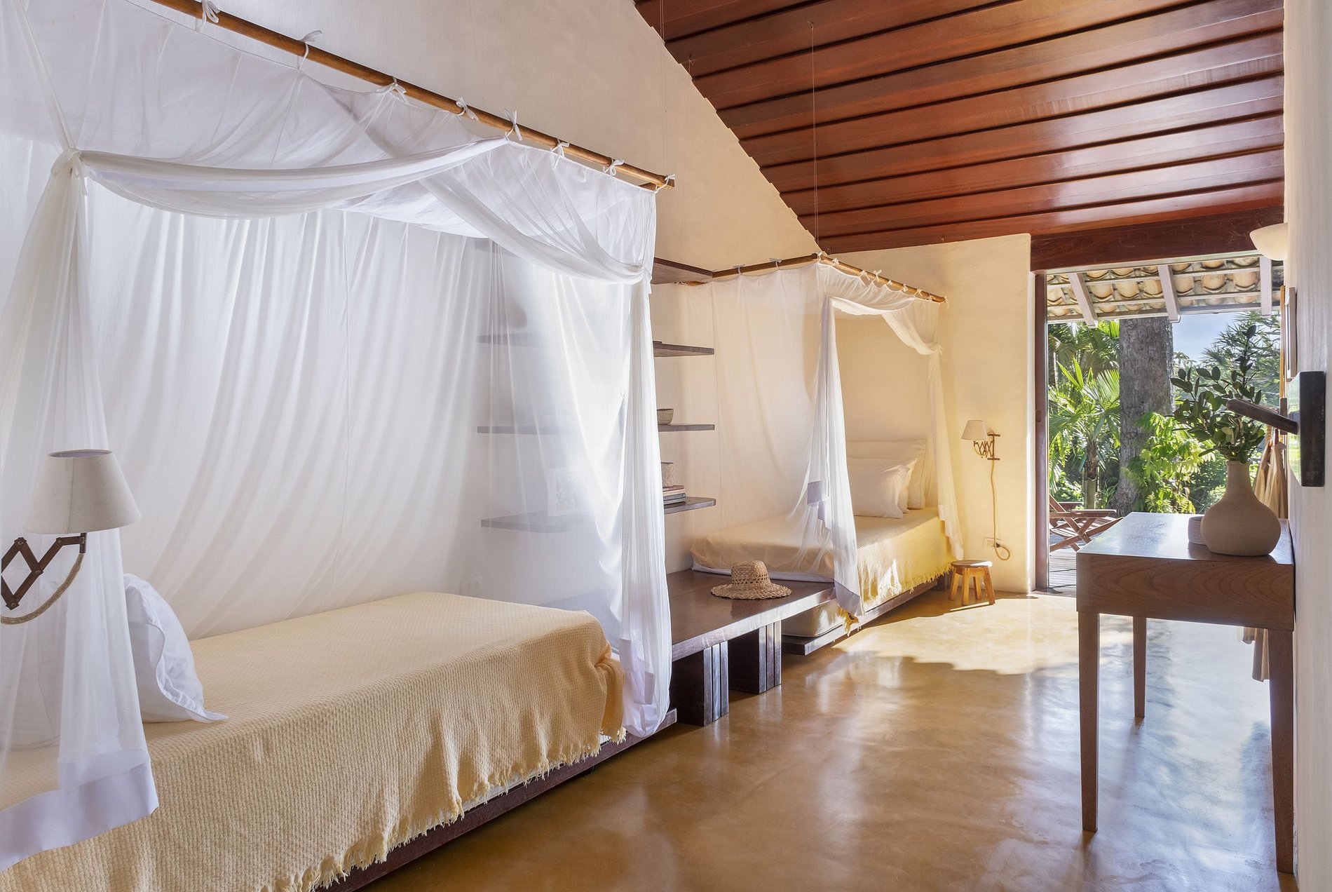 Master Suite: cama king, mosquetero, aire acondicionado, balcones, vista al jardín.