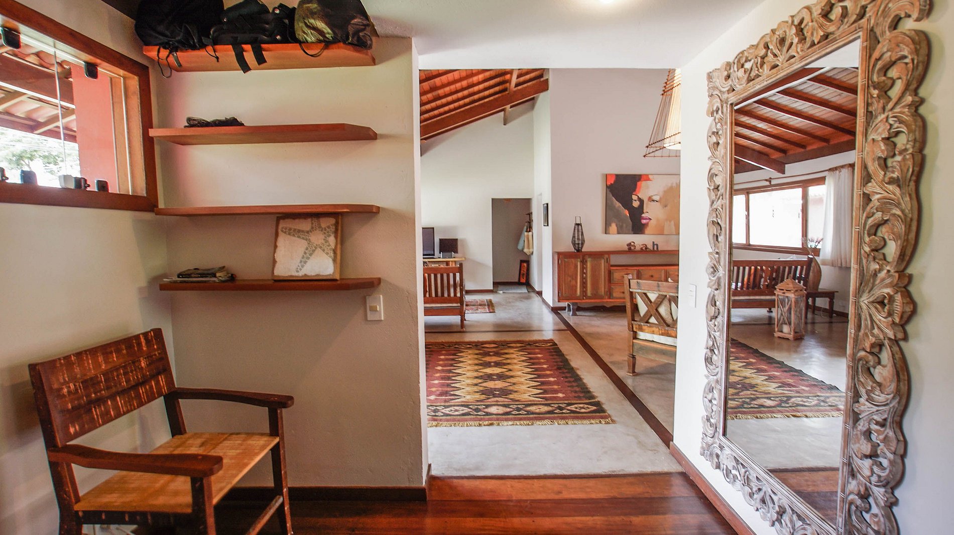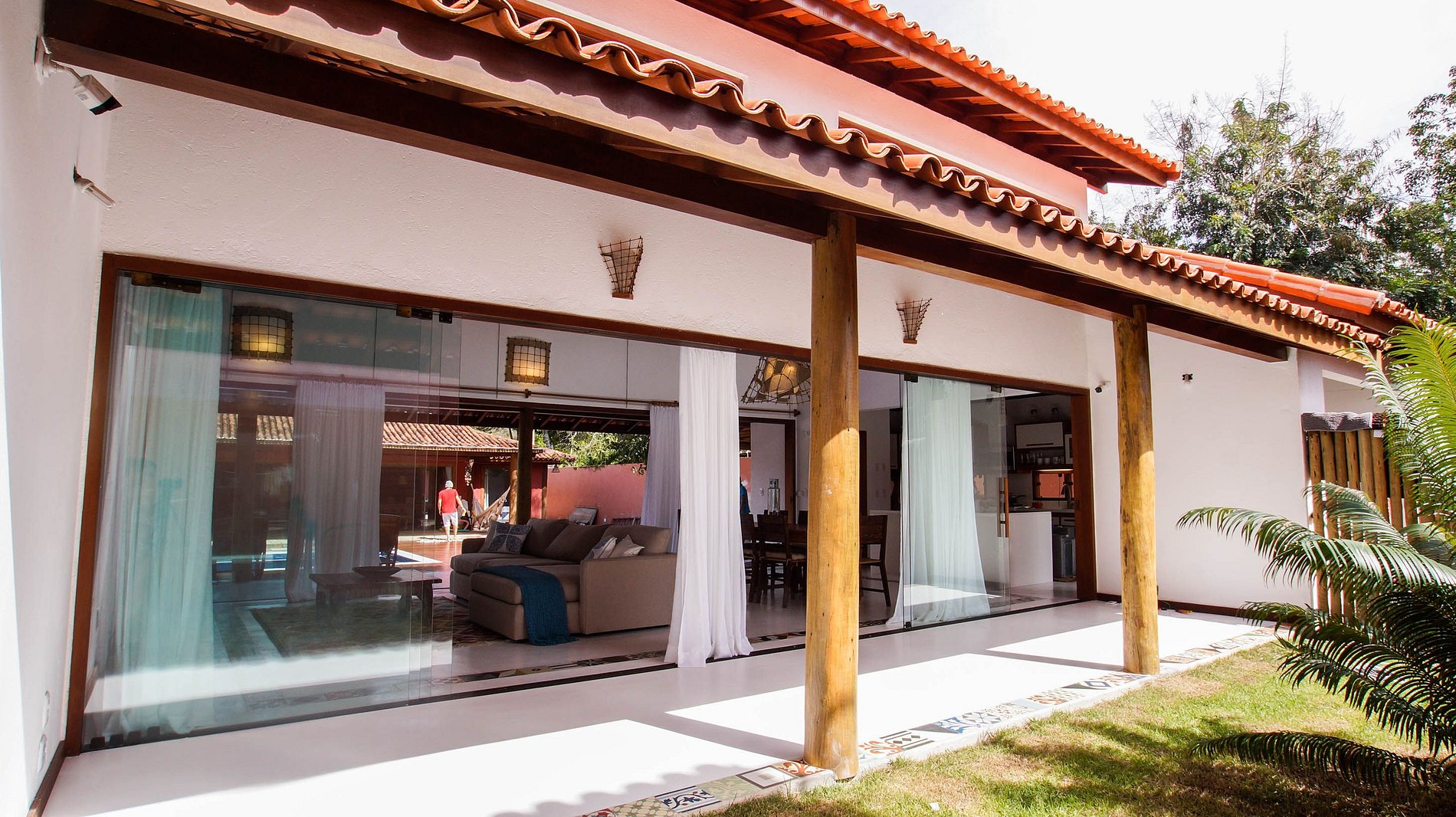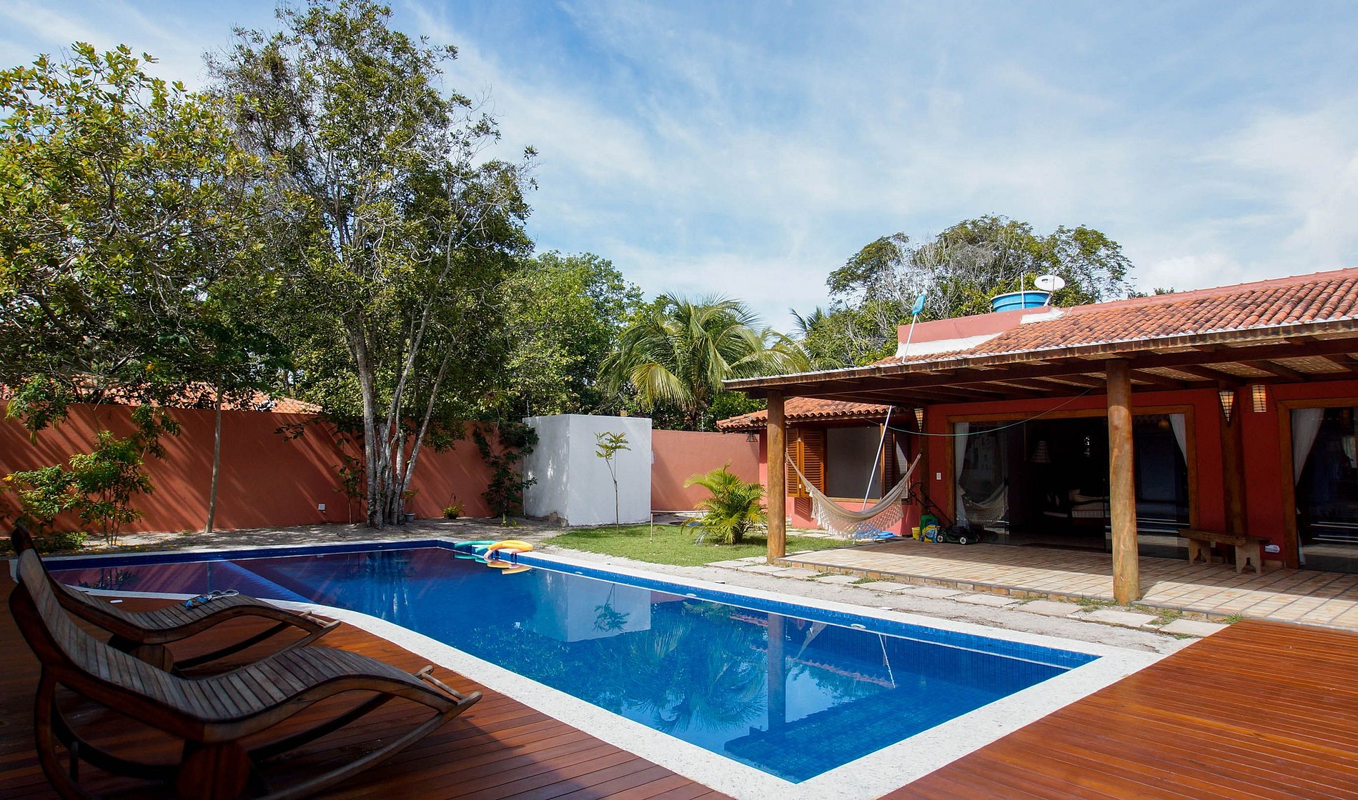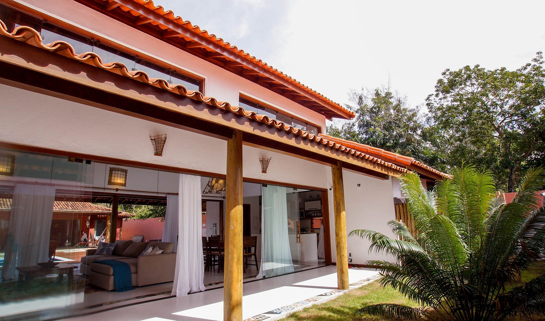 La villa está situada en Quintas do Arraial. Barrio residencial, arbolado, tranquilo y con calles de tierra. La casa está a 600 metros de la playa, un paseo tranquilo hasta la playa de arena blanca, sin olas y con piscinas naturales. También está a 15 minutos a pie del centro de Arraial D´Ajuda, o 5 minutos en coche.