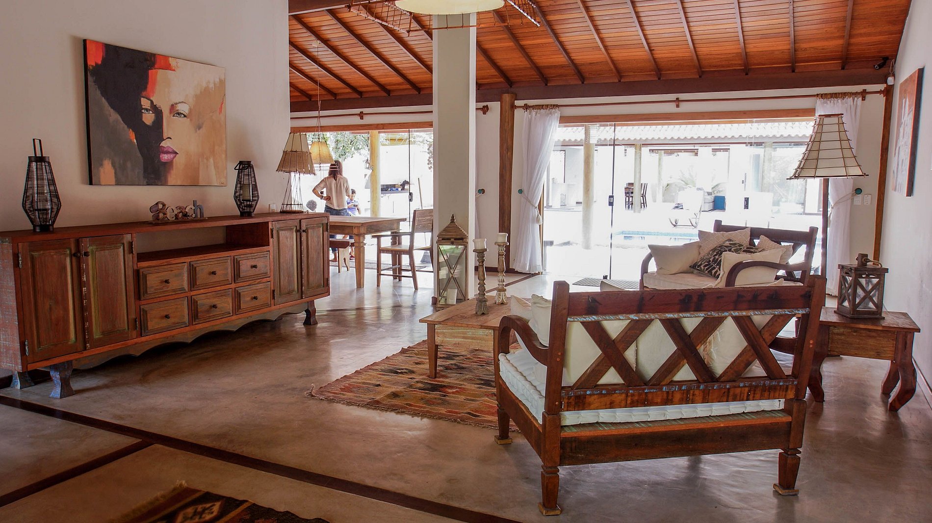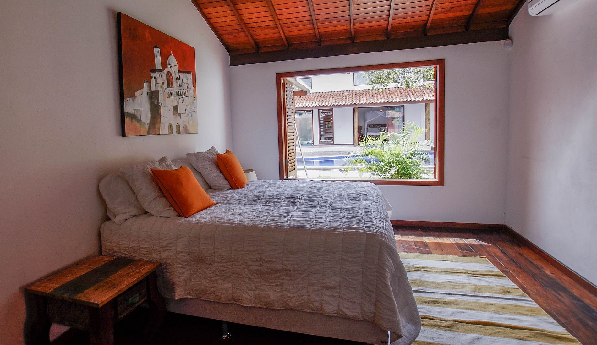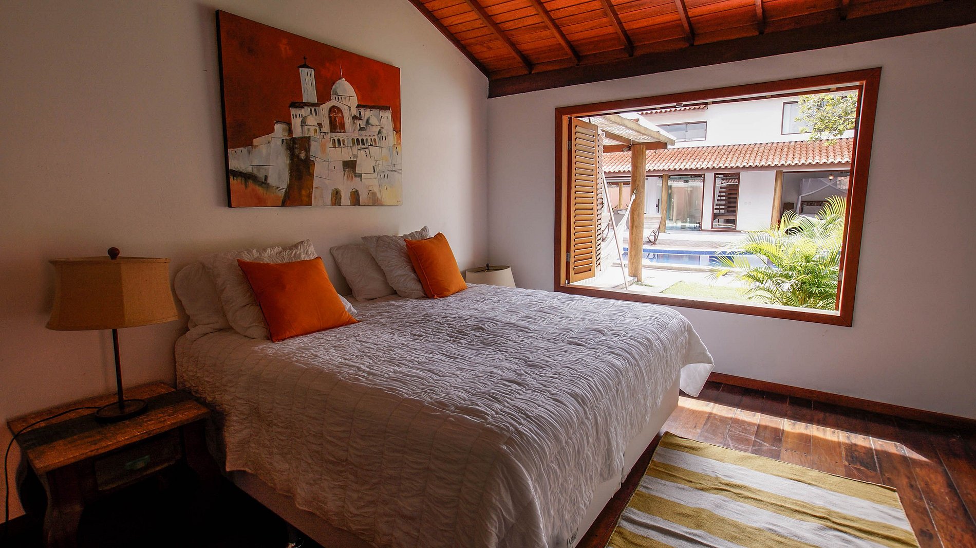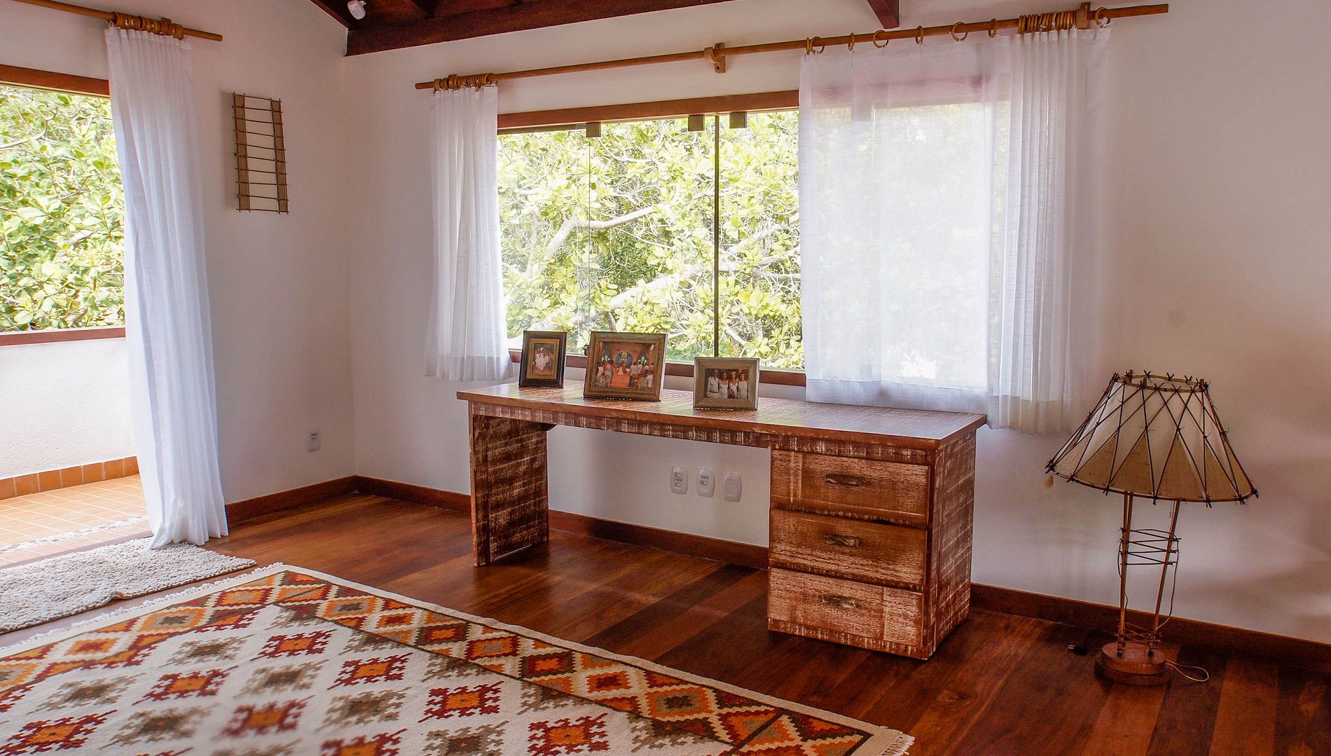 La villa está situada en Quintas do Arraial. Barrio residencial, arbolado, tranquilo y con calles de tierra. La casa está a 600 metros de la playa, un paseo tranquilo hasta la playa de arena blanca, sin olas y con piscinas naturales. También está a 15 minutos a pie del centro de Arraial D´Ajuda, o 5 minutos en coche.