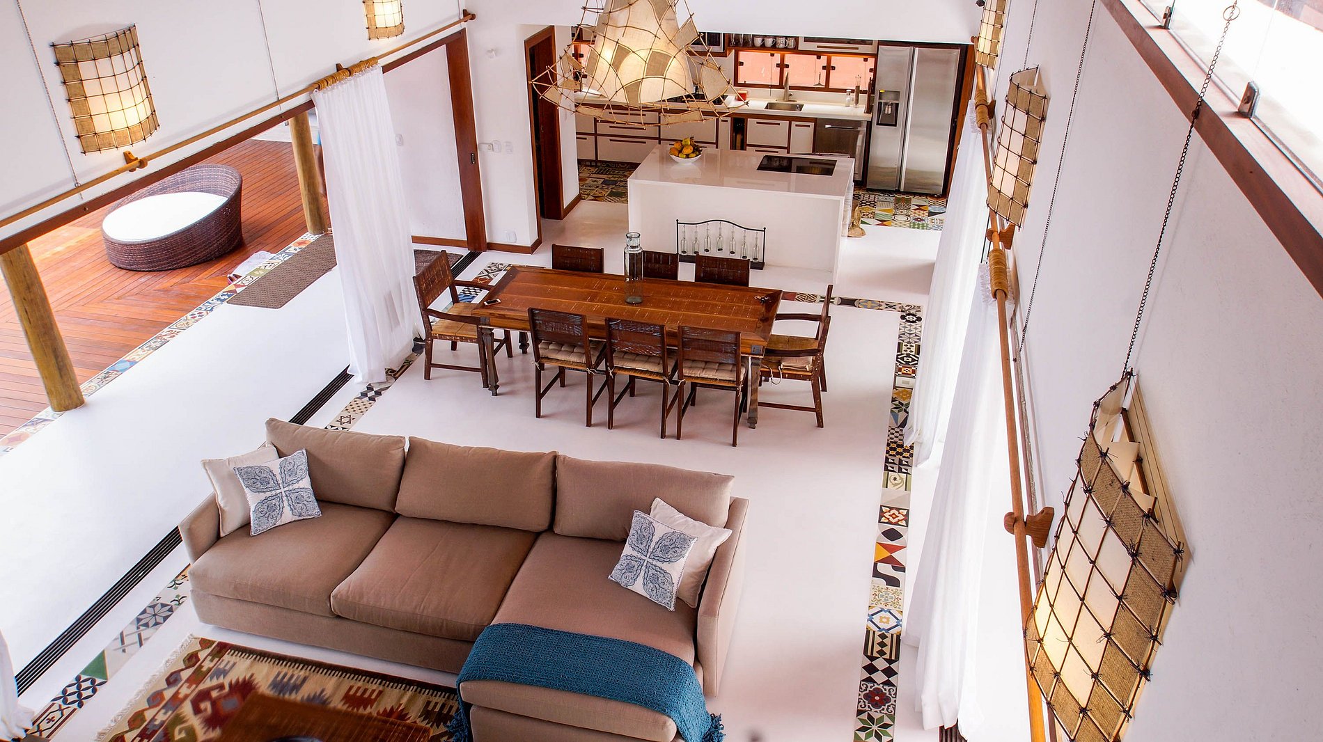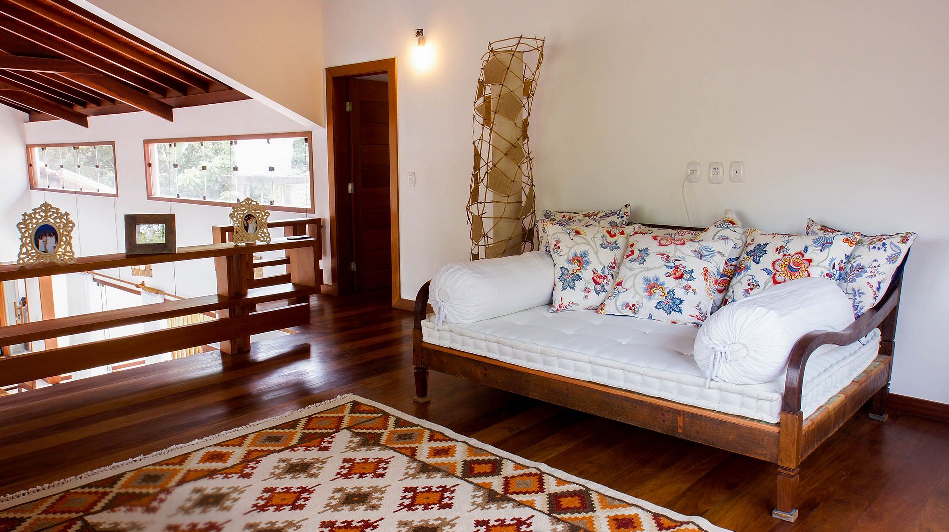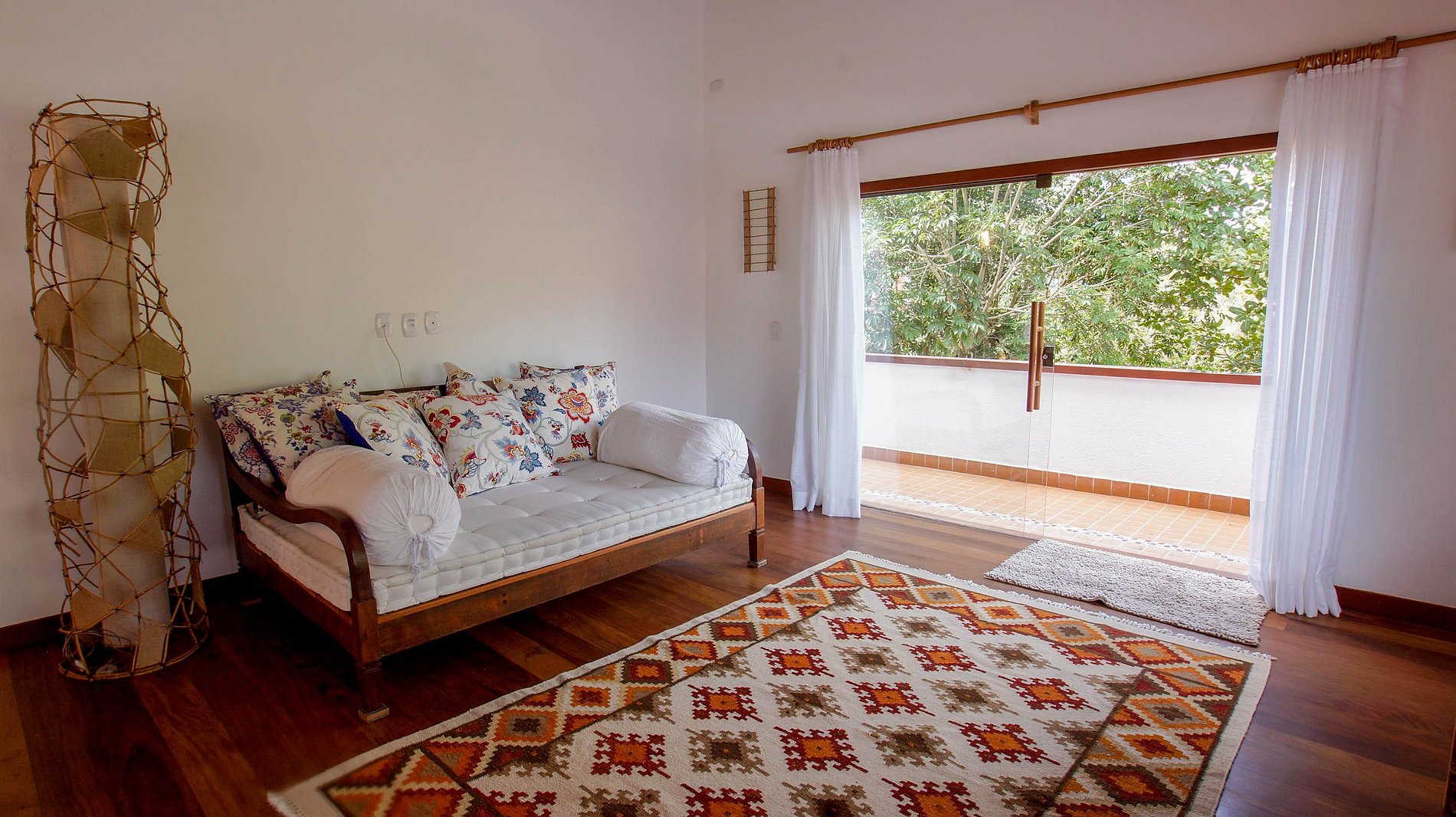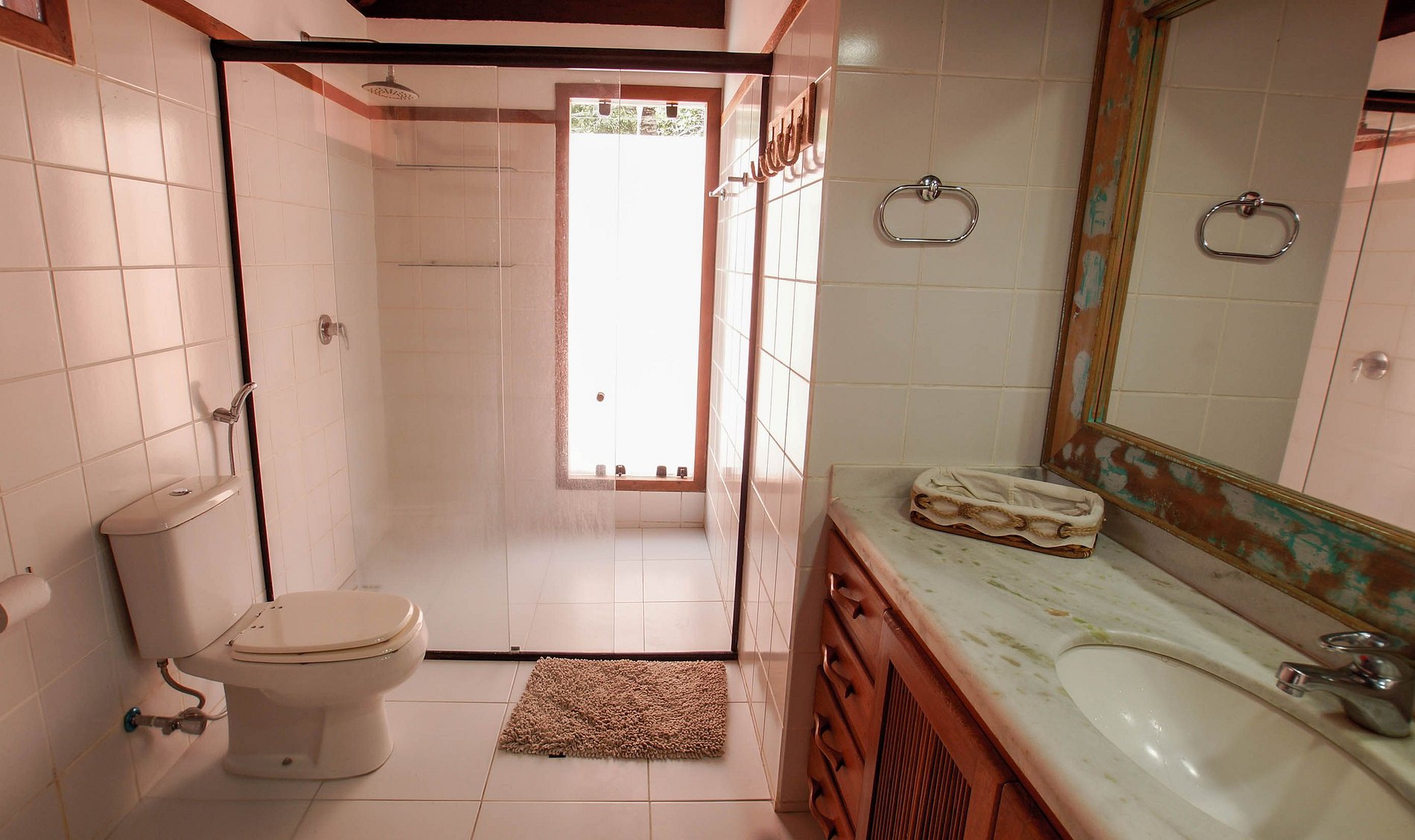 La villa está situada en Quintas do Arraial. Barrio residencial, arbolado, tranquilo y con calles de tierra. La casa está a 600 metros de la playa, un paseo tranquilo hasta la playa de arena blanca, sin olas y con piscinas naturales. También está a 15 minutos a pie del centro de Arraial D´Ajuda, o 5 minutos en coche.