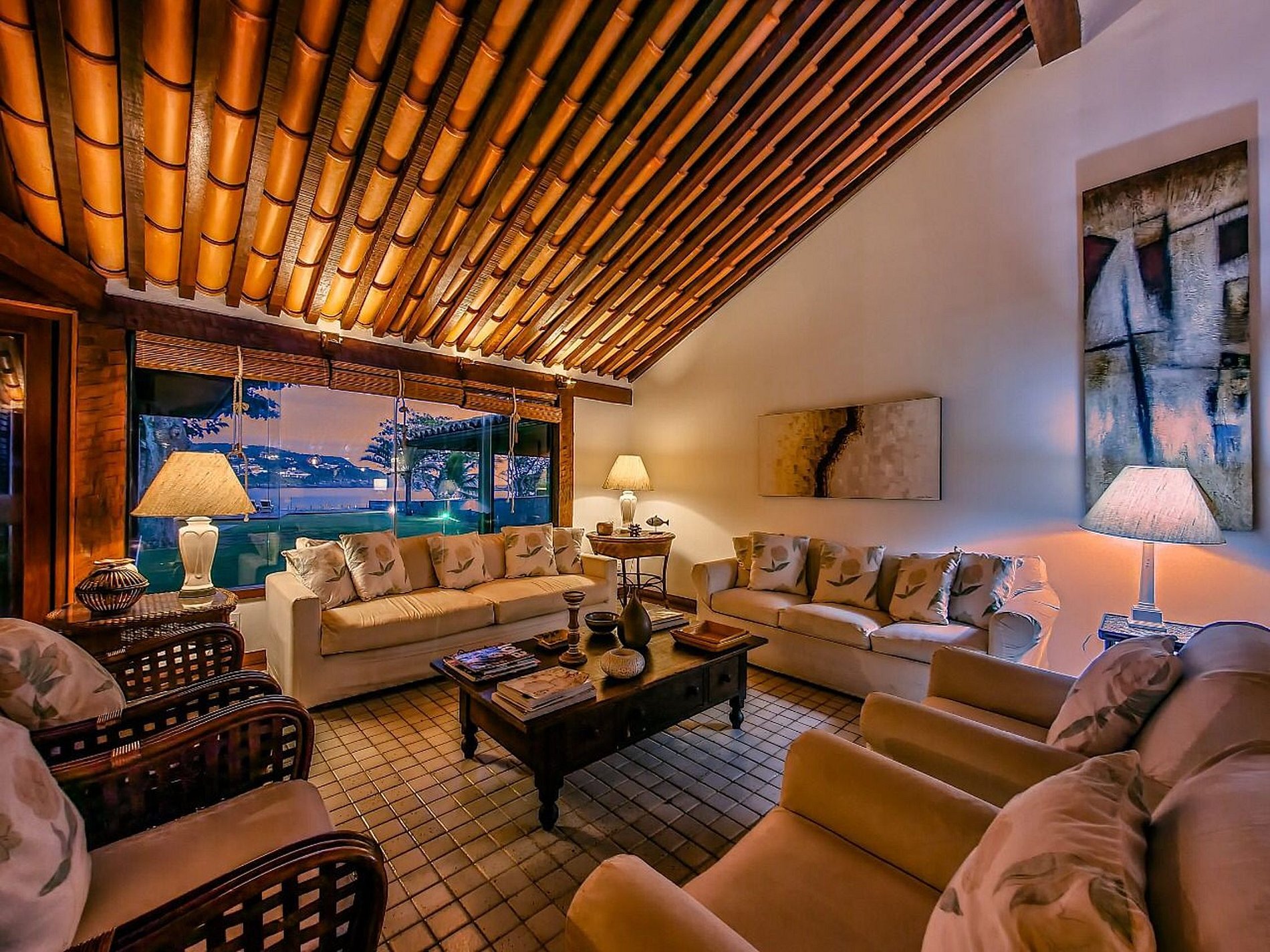 Esta magnífica casa de 2 plantas sobre la arena de 500m² y con 1.000m² de terreno, se encuentra en la playa de Ferradura en el balneario de Búzios. Además de tener una espléndida vista a la inmensidad del mar azul, también cuenta con un amplio césped al frente con hermosas tumbonas para disfrutar del verano.