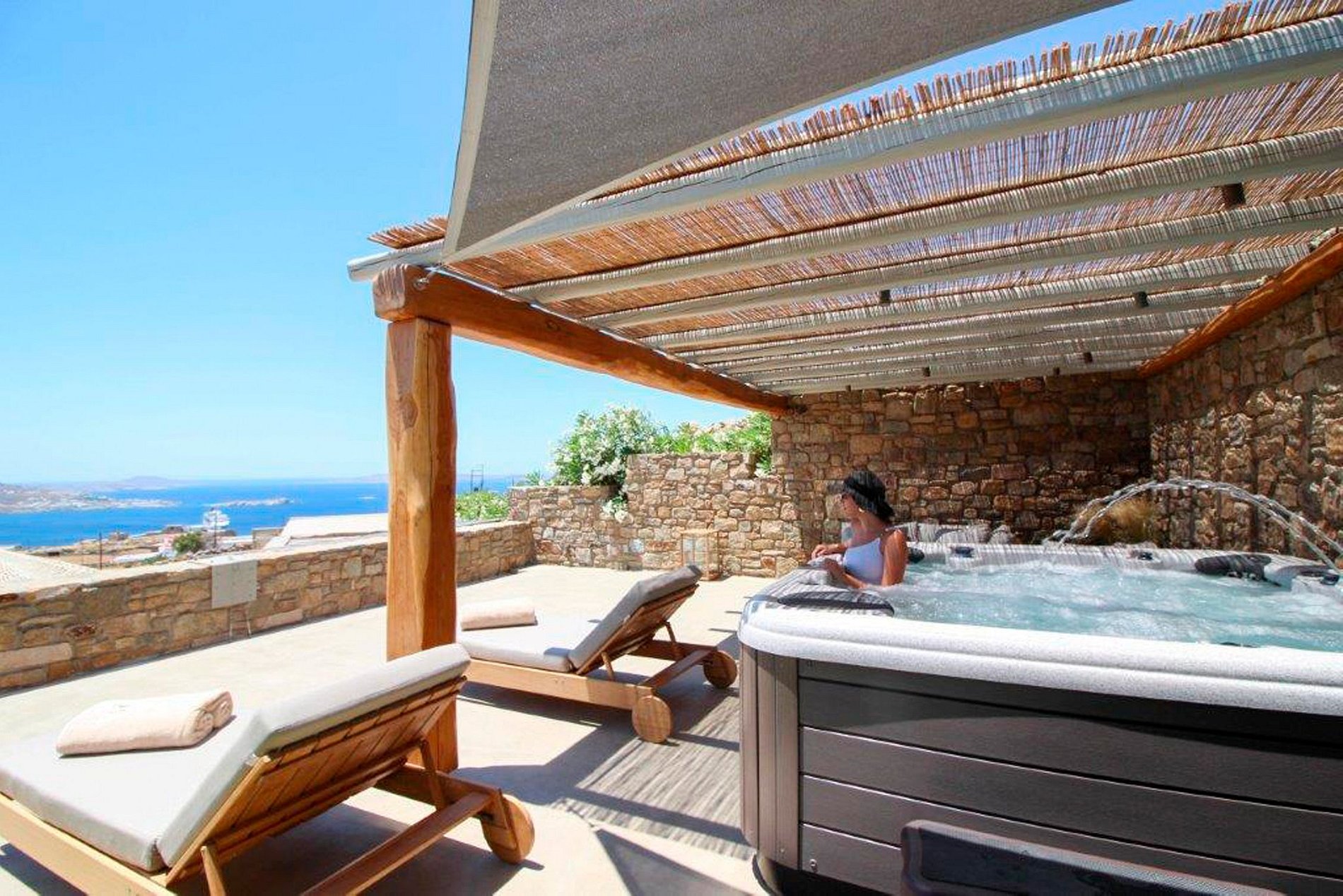 Esta villa ubicada en el área de Agia Sofia combina comodidades de última generación con el estilo tradicional de las Cícladas. La arquitectura se basa en el uso de materiales naturales, como piedra y madera, para garantizar la entrada de luz y ofrecer a los huéspedes una experiencia inigualable de los espacios abiertos. A sólo unos minutos del pintoresco centro de Mykonos, esta tranquila zona es el lugar perfecto para aquellos que buscan unas vacaciones relajantes en un hermoso entorno, estando convenientemente cerca de restaurantes y bares.