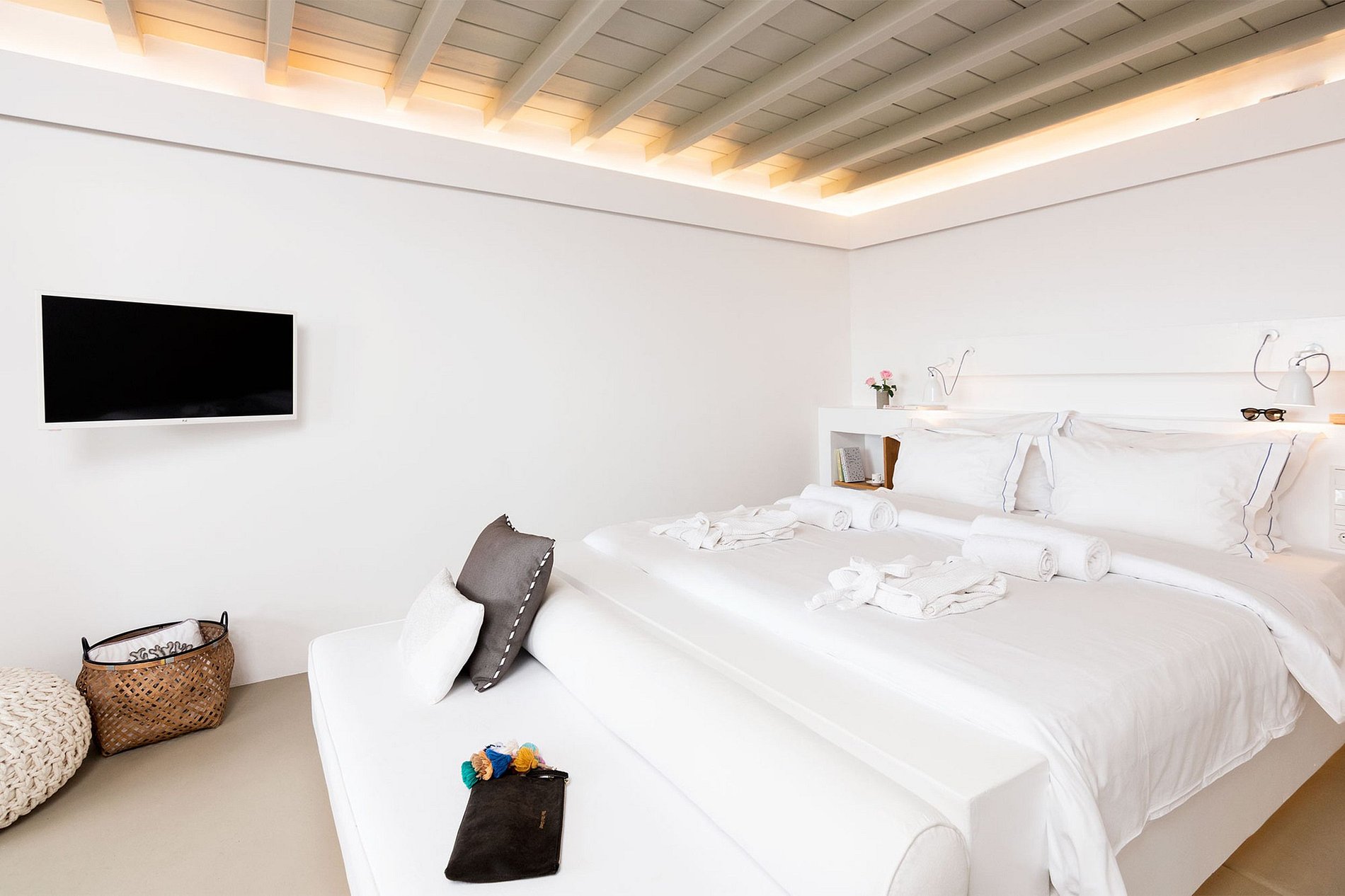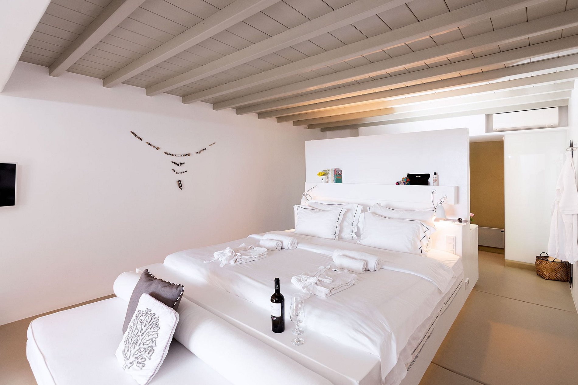 Villa con una superficie total de 150m2 que puede acomodar hasta 6 personas, con 3 habitaciones principales con baños privados y una vista infinita del mar Egeo desde cada una de ellas. Terraza en frente de cada habitación, cocina totalmente equipada, baño auxiliar, sala de estar y zonas comunes.