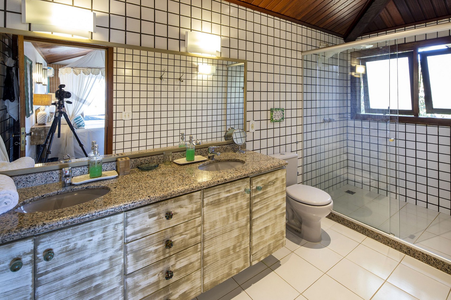 Hay 7 suites completas, todas con aire acondicionado. Algunas suites tienen 2 camas individuales y otras tienen una cama doble. La suite principal tiene una cama King y una maravillosa vista panorámica desde sus grandes puertas corredizas que dan acceso directo a la terraza con una hamaca.