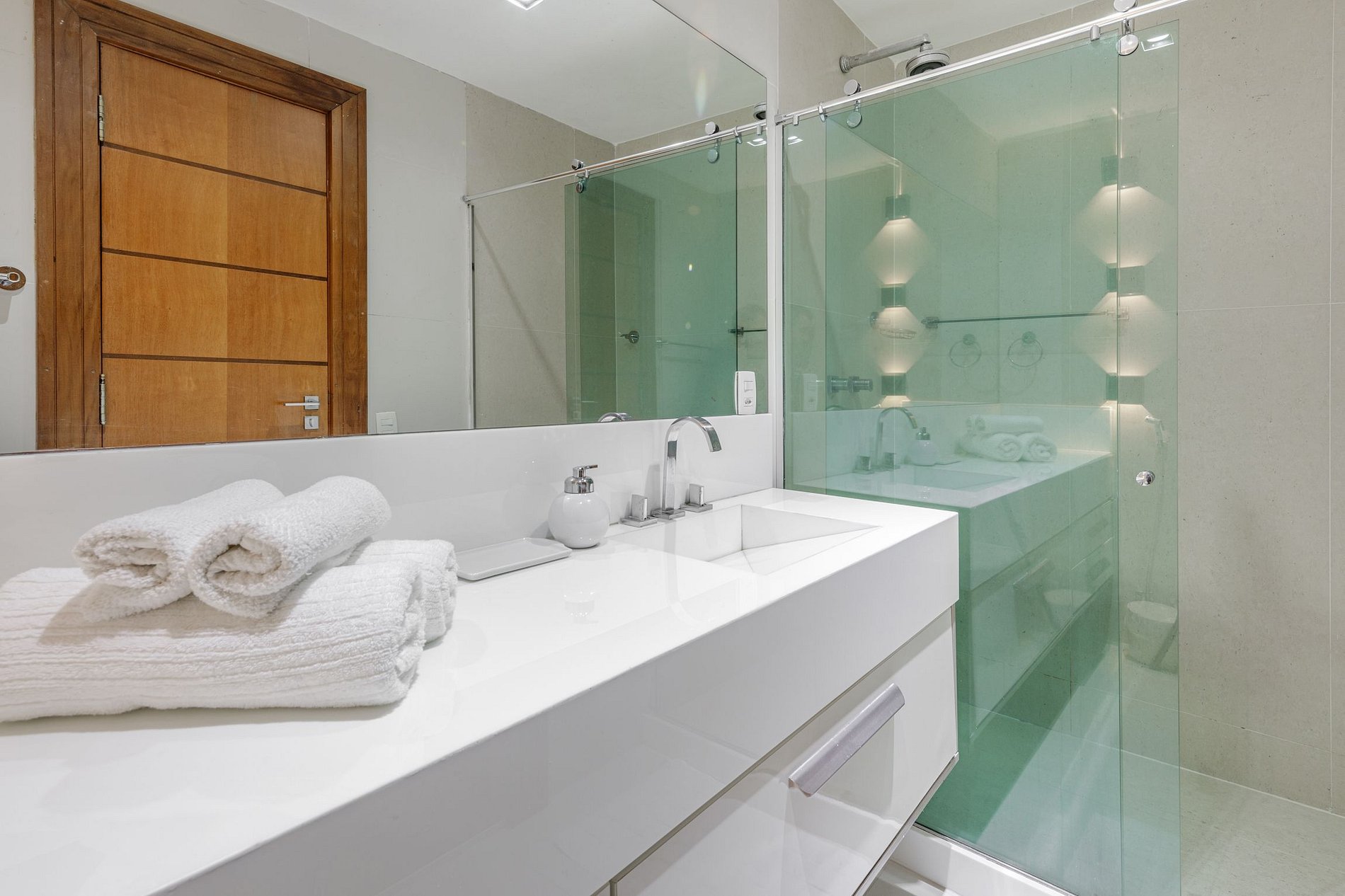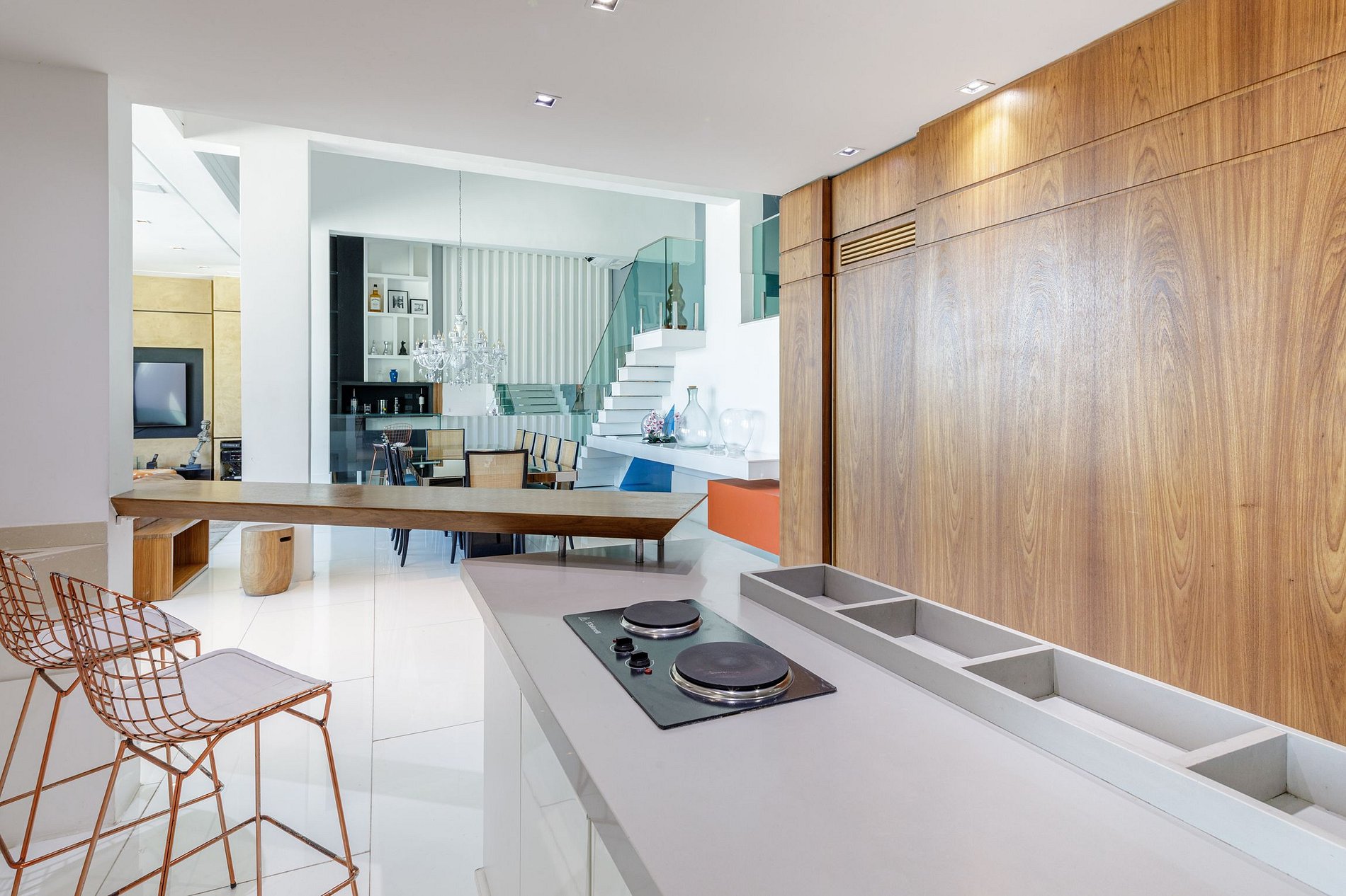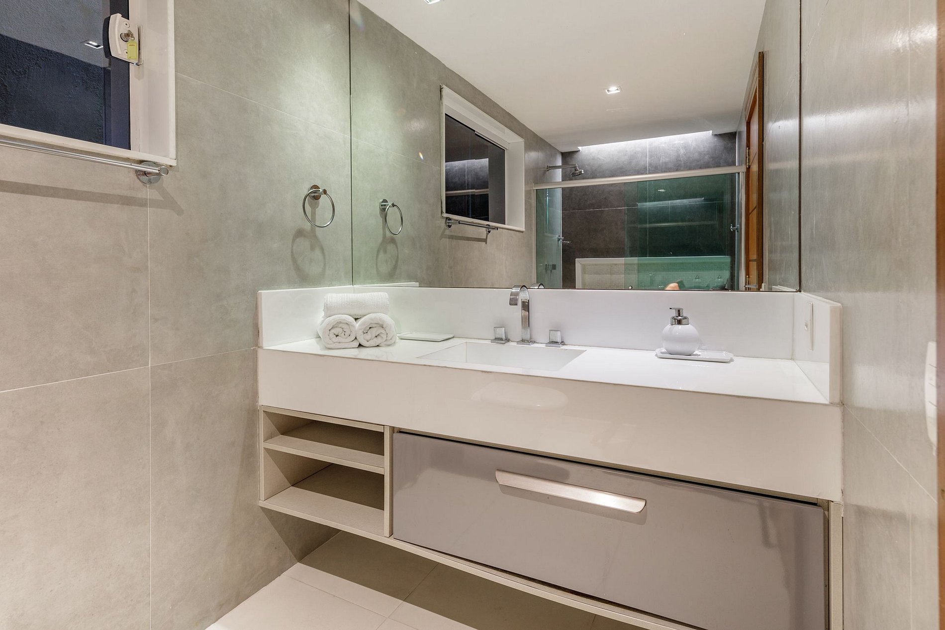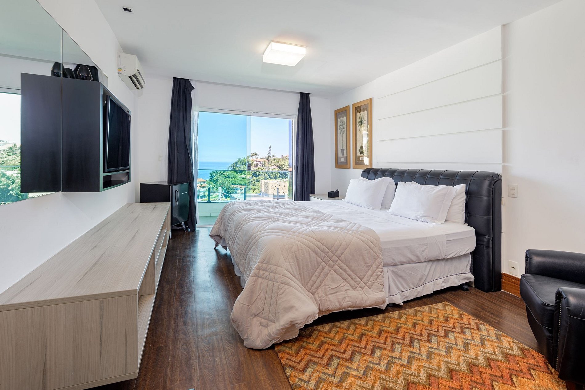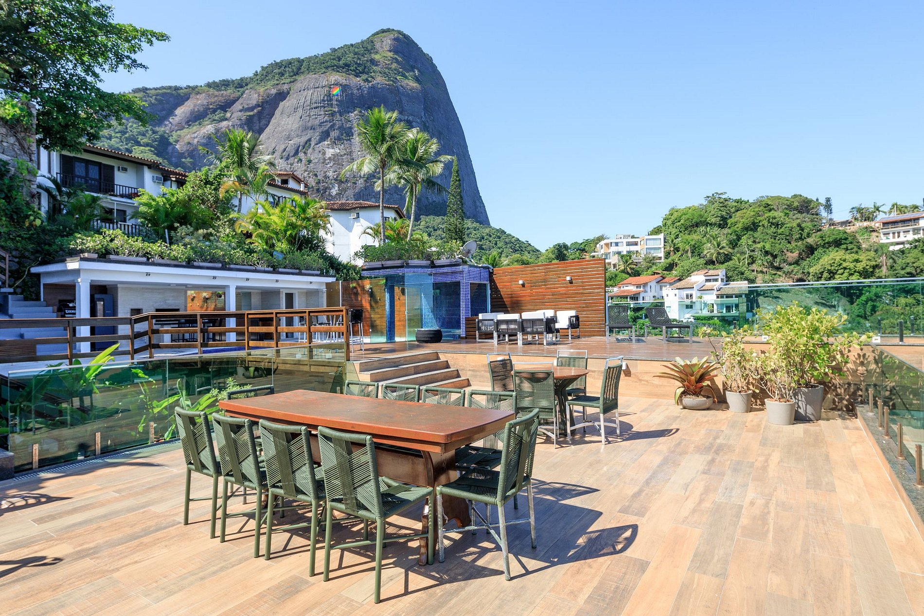 La mejor manera de disfrutar de esta asombrosa vista es en las tumbonas de diseño tropical de la inmensa terraza de construcción magistral con efectos infinitivos. Si se siente como para refrescarse del calor de Río, no hay mejor lugar que la elegante piscina incrustada en la terraza. El lujoso interior de esta mansión única no deja ningún deseo sin cumplir. Los salones y comedores son muy abiertos y amplios, diseñados con techos altos, modernos y cómodos al mismo tiempo. También hay un bar alineado con la sala de estar que le da al lugar un ambiente relajado, seguro que pasará algunas noches inolvidables con sus seres queridos aquí. Además, el lugar posee un amplio gimnasio profesionalmente equipado y una sauna.