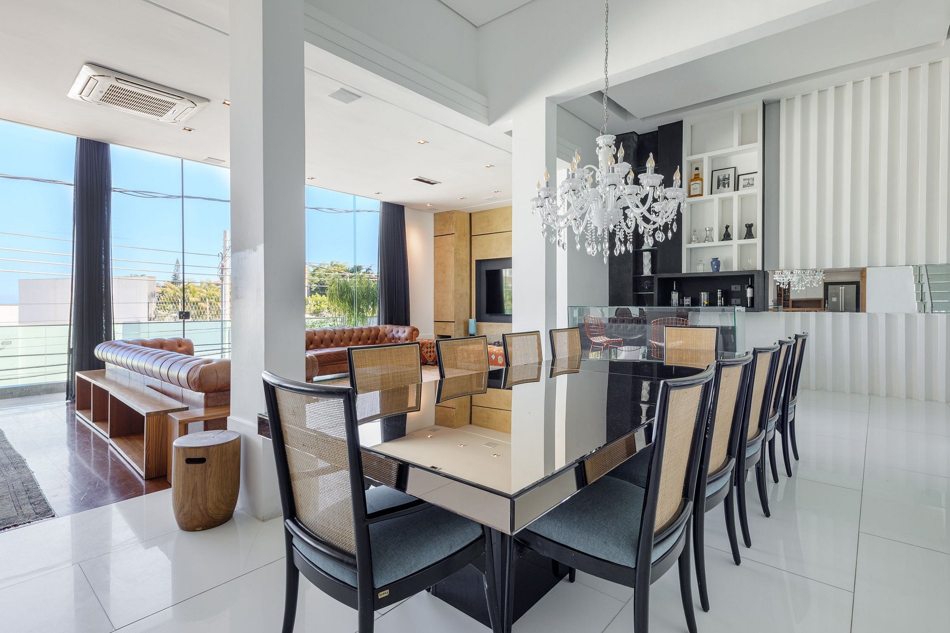 La mejor manera de disfrutar de esta asombrosa vista es en las tumbonas de diseño tropical de la inmensa terraza de construcción magistral con efectos infinitivos. Si se siente como para refrescarse del calor de Río, no hay mejor lugar que la elegante piscina incrustada en la terraza. El lujoso interior de esta mansión única no deja ningún deseo sin cumplir. Los salones y comedores son muy abiertos y amplios, diseñados con techos altos, modernos y cómodos al mismo tiempo. También hay un bar alineado con la sala de estar que le da al lugar un ambiente relajado, seguro que pasará algunas noches inolvidables con sus seres queridos aquí. Además, el lugar posee un amplio gimnasio profesionalmente equipado y una sauna.