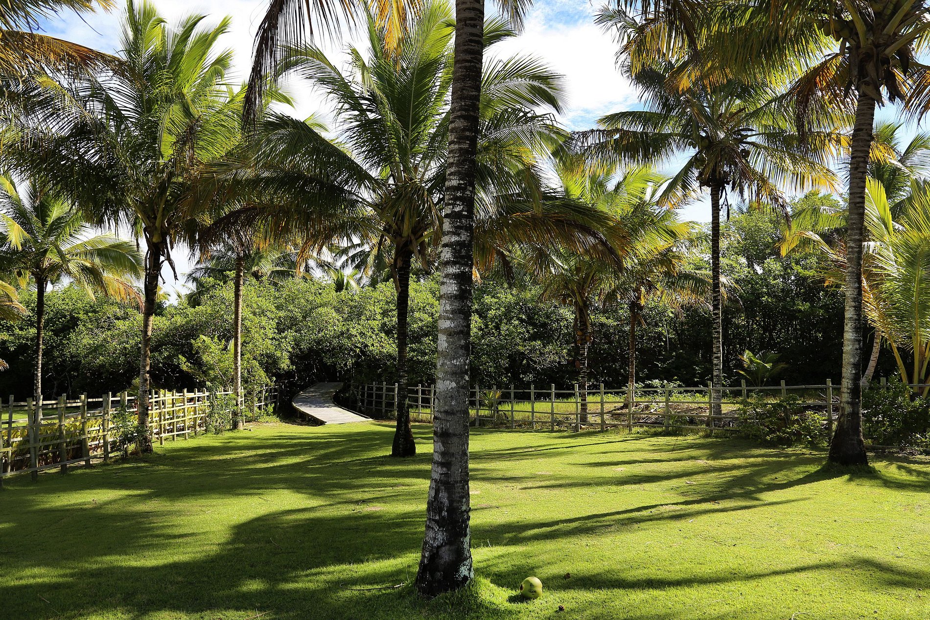 Docenas de grandes palmeras emergen del jardín, lo que mejora el ambiente tropical de la propiedad. Este increíble ambiente invita a todos los huéspedes a soñar y olvidar todos los pequeños problemas y preocupaciones de la vida cotidiana.