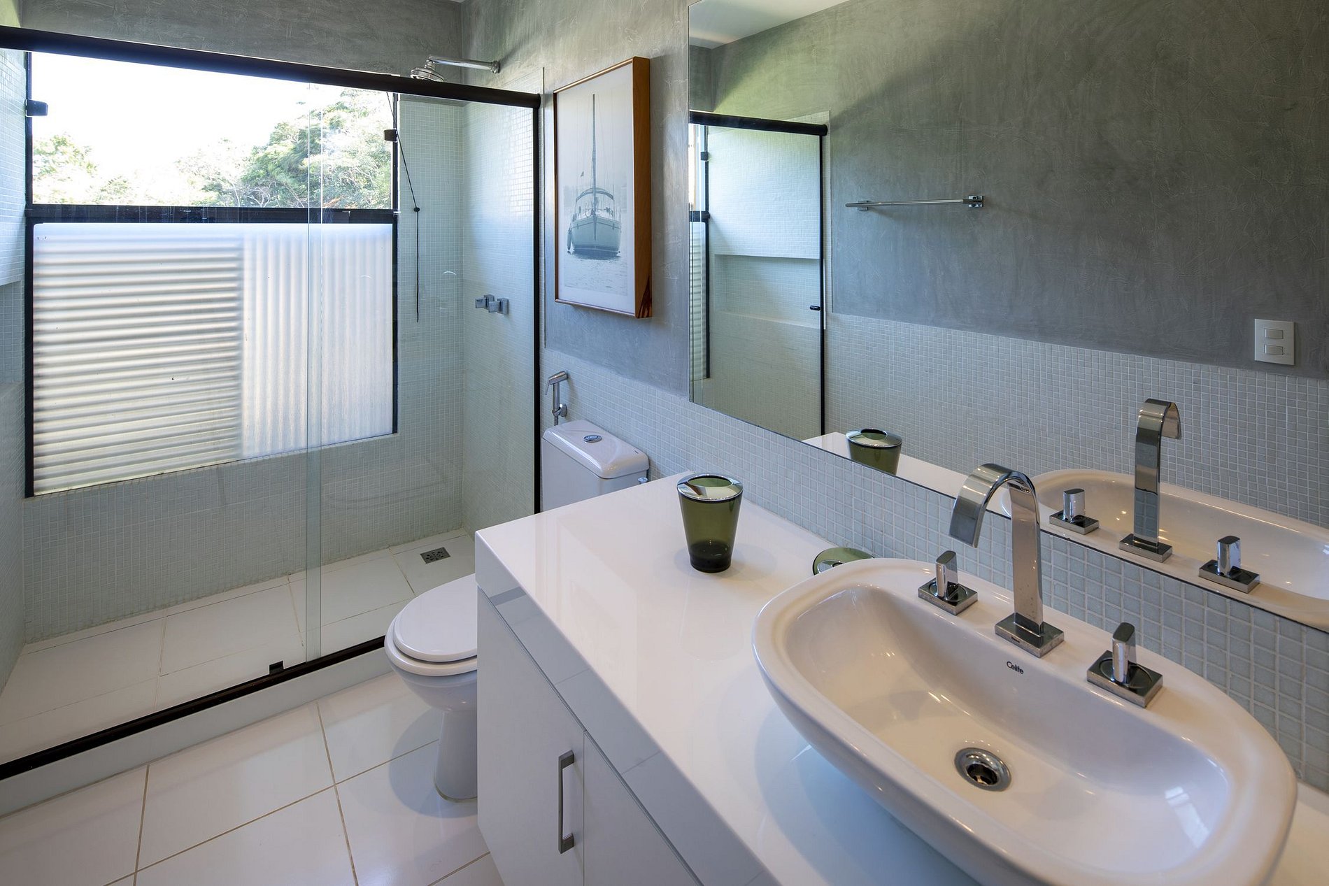 En la entrada, la casa le da un aspecto ecológico, así como el nombre del condominio en el que se inserta. Un pasillo que da acceso a absolutamente todas las áreas de la casa, al final de esta, el encuentro con el jardín bellamente decorado con piscina, sauna y barbacoa con deck y muebles de madera de diseño y un hermoso techo de cristal que ilumina toda el área con luz solar y luna.