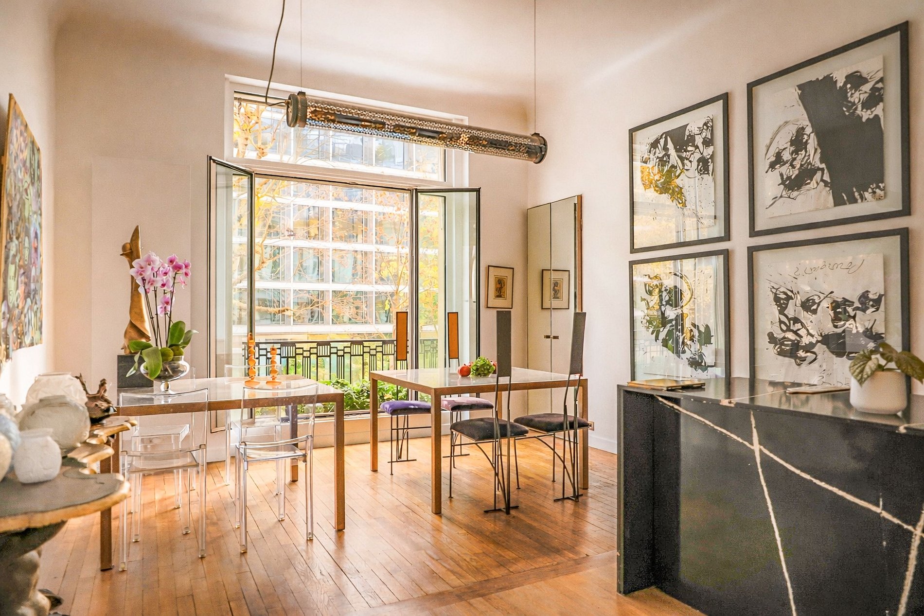Oculta tras una elegante verja de hierro forjado, la propiedad se revela como una casa confidencial parisina, evocando la época dorada de los años veinte, donde la arquitectura atemporal se fusiona con un estilo de vida refinado. Desde el primer momento en que entras, se percibe el tono: amplios volúmenes, techos de altura notable y una atmósfera única marcada por la historia y el carácter.