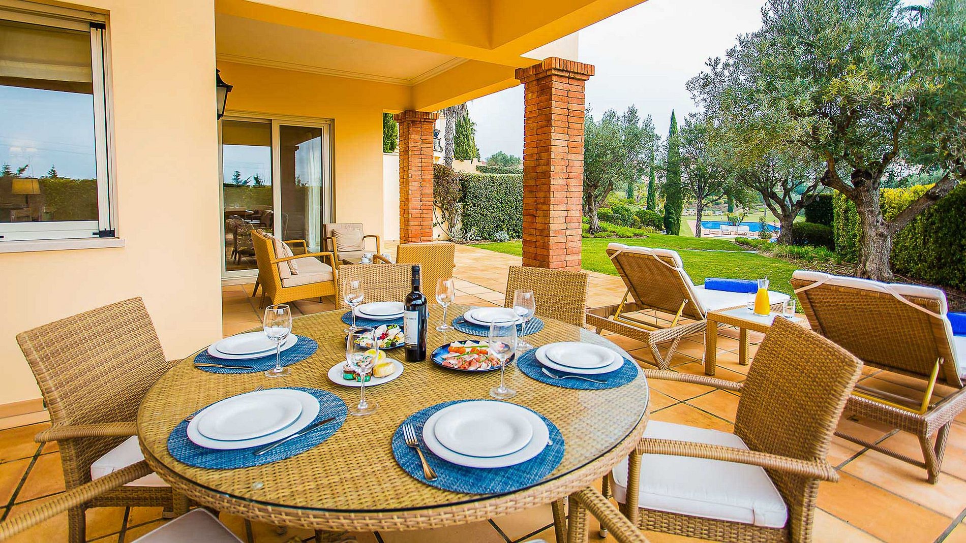 La villa cuenta con dos habitaciones dobles y puede acomodar hasta 4 personas. Zona de estar y comedor diáfanos con mucha luz y posibilidad de abrir puertas al exterior. También encontrará un patio cubierto con amplias áreas para vivir al aire libre y amplios jardines durante todo el año con vista a la piscina comunitaria. Las cocinas están muy bien equipadas, lo que le permite disfrutar de una cena en casa preparada por un chef privado, pero los huéspedes también pueden pedir a la carta.