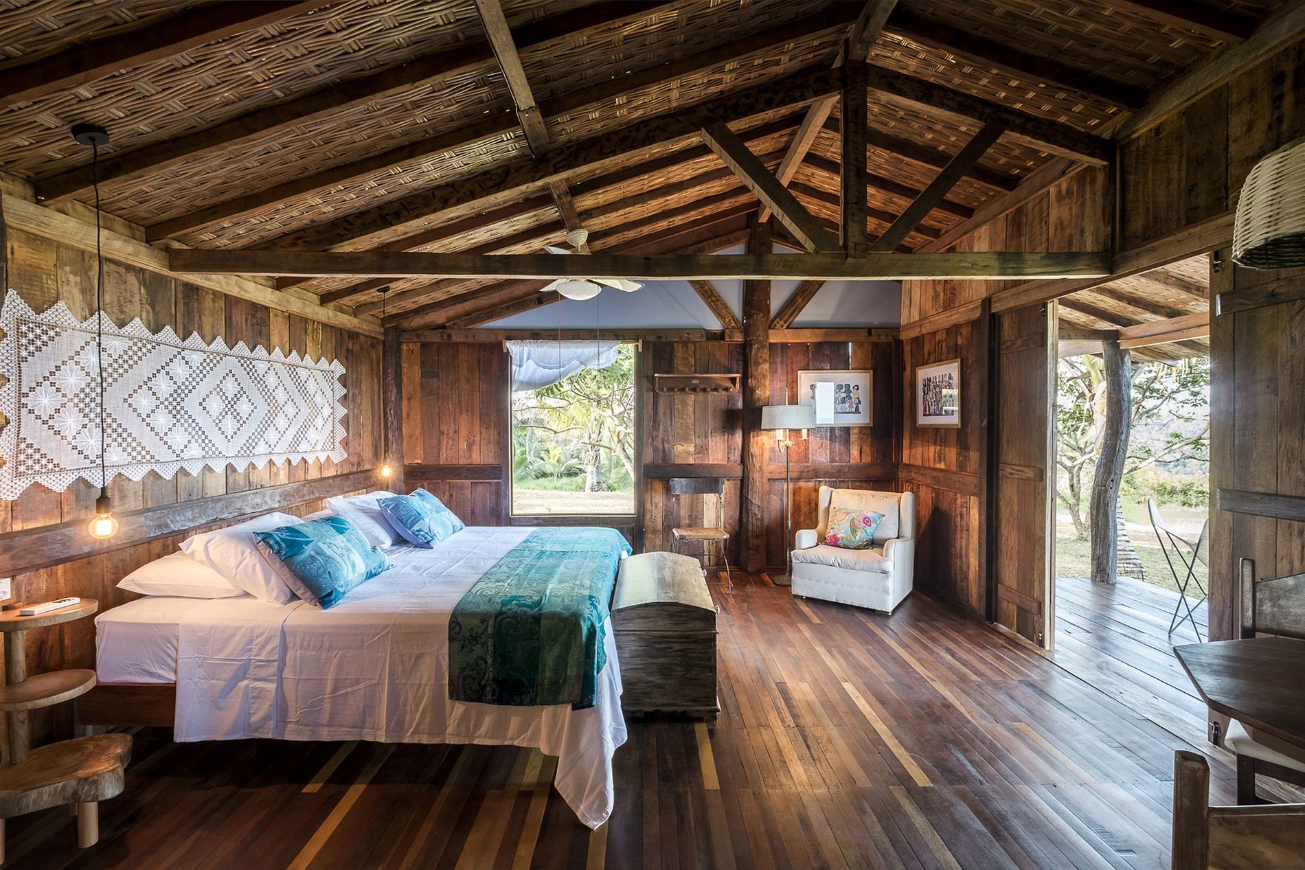 Además del pergolado romántico, con brisas del mar, y el área gourmet con son lugares fantásticos para su barbacoa de pescado y langosta de Bahía.Cada una de las 4 suites ofrece una hermosa vista.La casa principal, grande sus terrazas, hermosas cocinas y gran sala, tiene dus suites siendo una master con bañera de hidromasaje, y su balcón privado con vistas al mar.El elemento principal de la construcción ecológica de esta hacienda "rustic-chic" son las hermosas maderas tropicales.