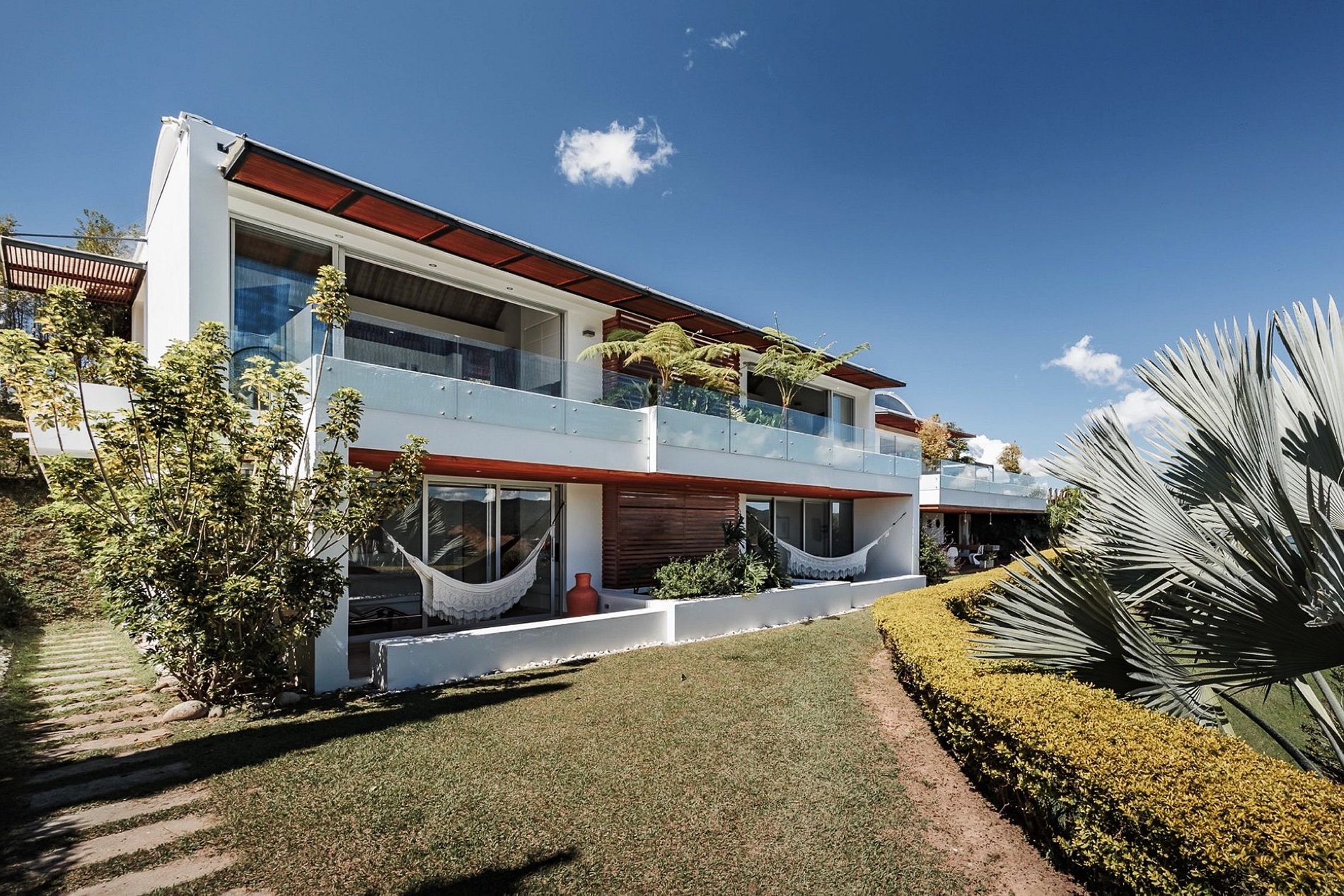 La casa cuenta con seis habitaciones, cada una con su propio baño, de las cuales cuatro están equipadas con camas King Size. La amplia zona social es ideal para reuniones y entretenimiento. Los huéspedes pueden disfrutar de la piscina climatizada y los jacuzzis, ambos con hermosas vistas al paisaje. La chimenea es perfecta para noches relajantes.