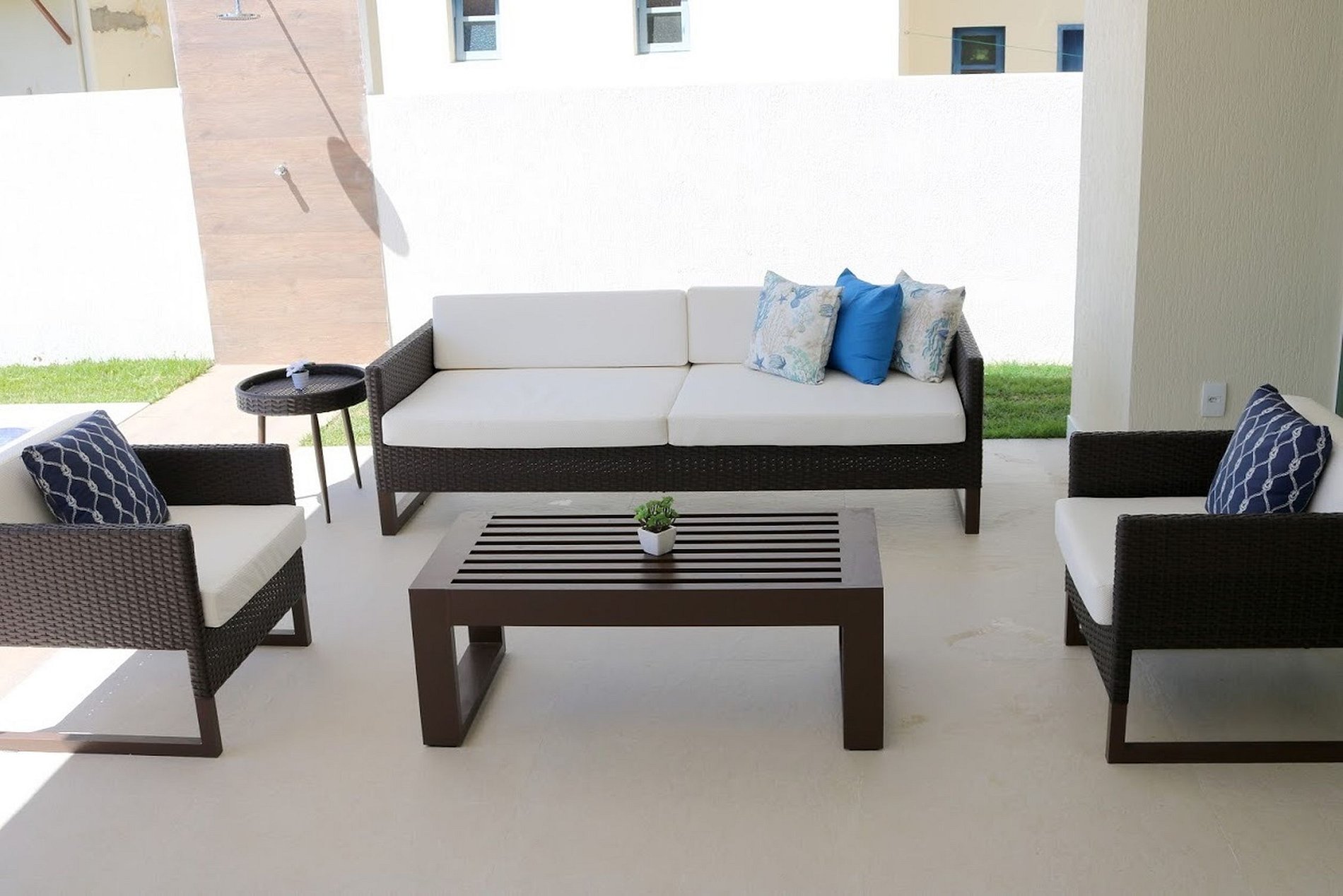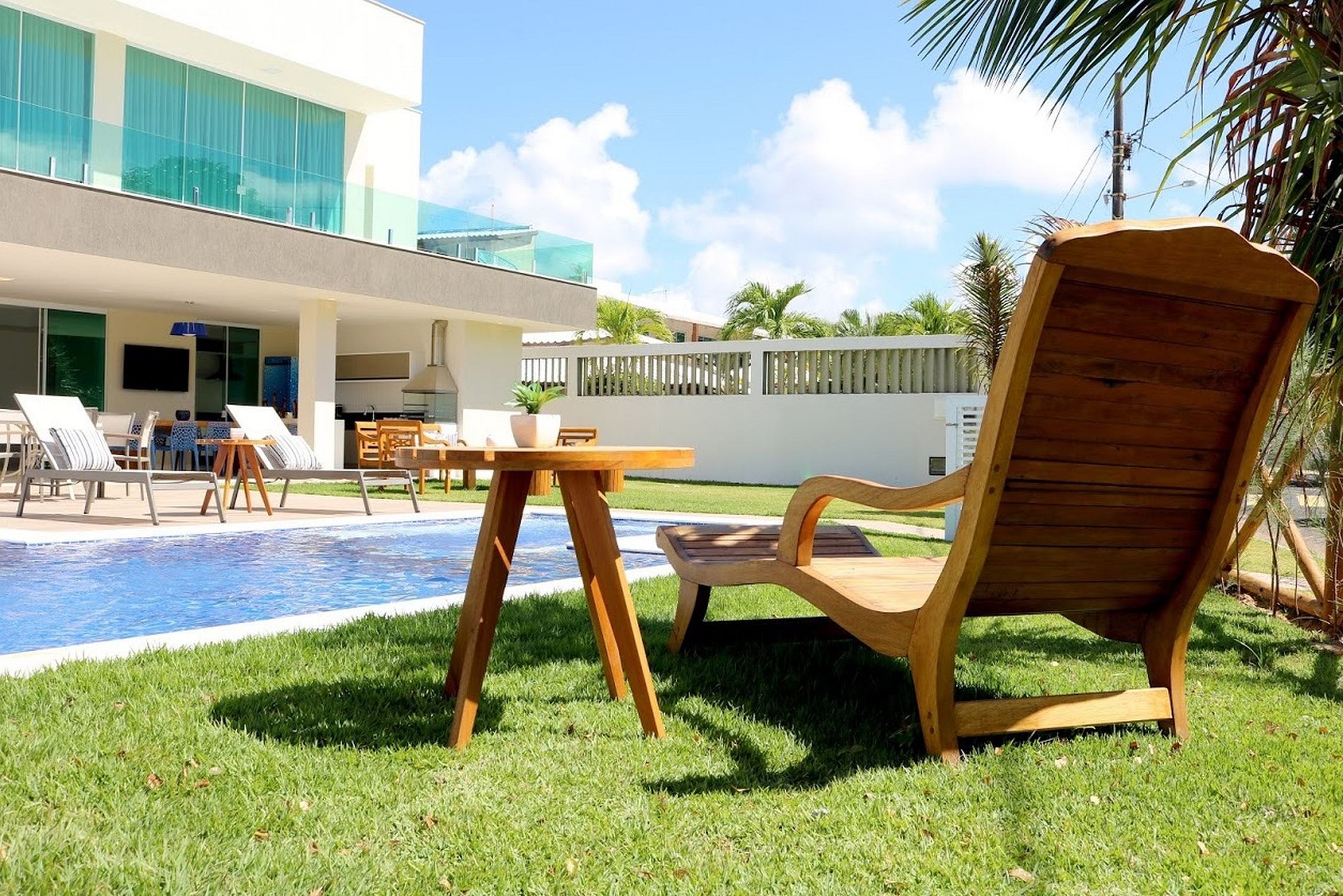 Todavía en el primer piso hay una suite con vista a la piscina, cama queen size, closet, smart TV y baño grande. En el segundo piso hay 4 fabulosas suites. Todas con un amplio balcón que tiene vista a toda la zona, e incluso vista al mar. Cada una de las suites cuenta con cama queen, smart TV, closet y baño. La casa tiene capacidad para 5 parejas o hasta 16 personas.