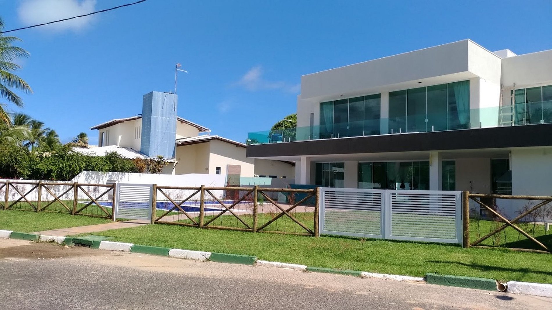 A menos de 100 metros de la hermosa playa de Guarajuba, la casa alberga 5 suites. La fachada moderna aporta refinamiento. El interior tiene un atrio que ayuda con la acústica y la ventilación.