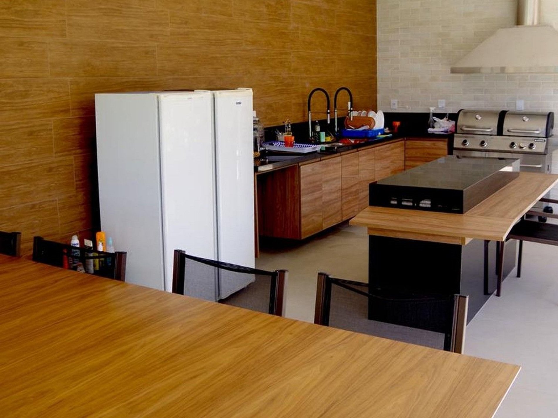 Sala de juegos con mesa de ping pong, futbolín y cartas. Aseo y ducha. El área gourmet cuenta con quincho doble, mesa de trabajo, dos refrigeradores y dos mesas para atender a familiares, amigos y espacio para 16 personas sentadas. La piscina también cuenta con 04 tumbonas. Además, en la planta baja se encuentra la cocina completa con: dos frigoríficos, vitrocerámica y horno eléctrico, lavavajillas y demás electrodomésticos. 01 suite con cama queen size. Además, por supuesto, de lavandería y aseo.