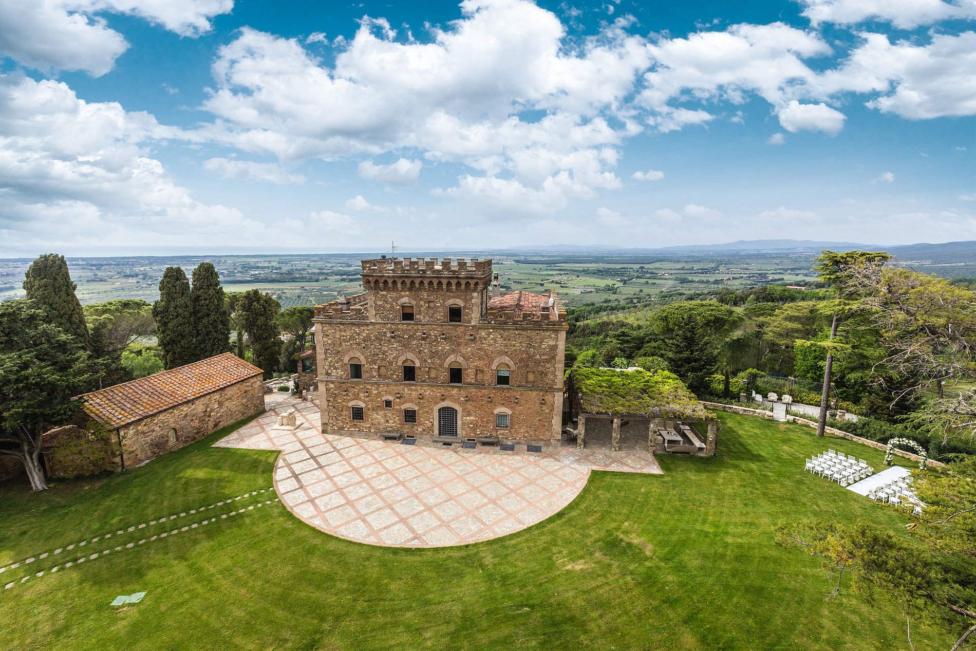 El castillo está situado en un entorno extraordinario, rodeado por las colinas toscanas, a tan sólo 10 minutos del mar y con vistas a la histórica ciudad de Castagneto Carducci.