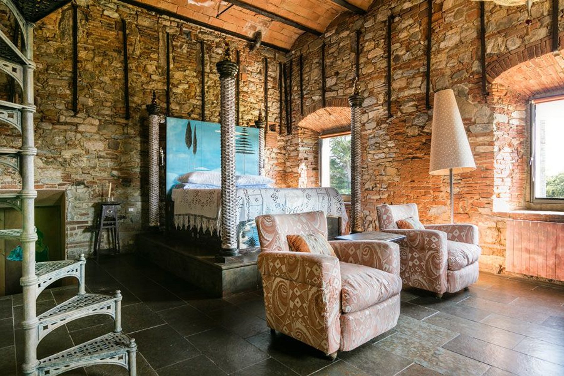 Consta de enormes interiores de 1.500m2, 200m2 de terrazas y 7 hectáreas de terreno, que ofrecen una vista espectacular de la campiña toscana: se sentirá como si hubiera entrado en un cuento de hadas.