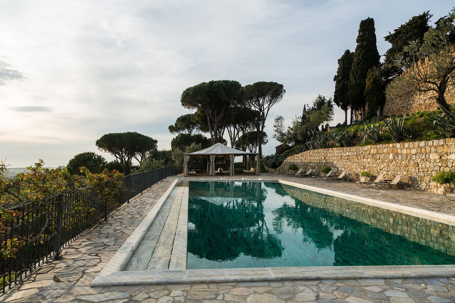 El castillo está situado en un entorno extraordinario, rodeado por las colinas toscanas, a tan sólo 10 minutos del mar y con vistas a la histórica ciudad de Castagneto Carducci.