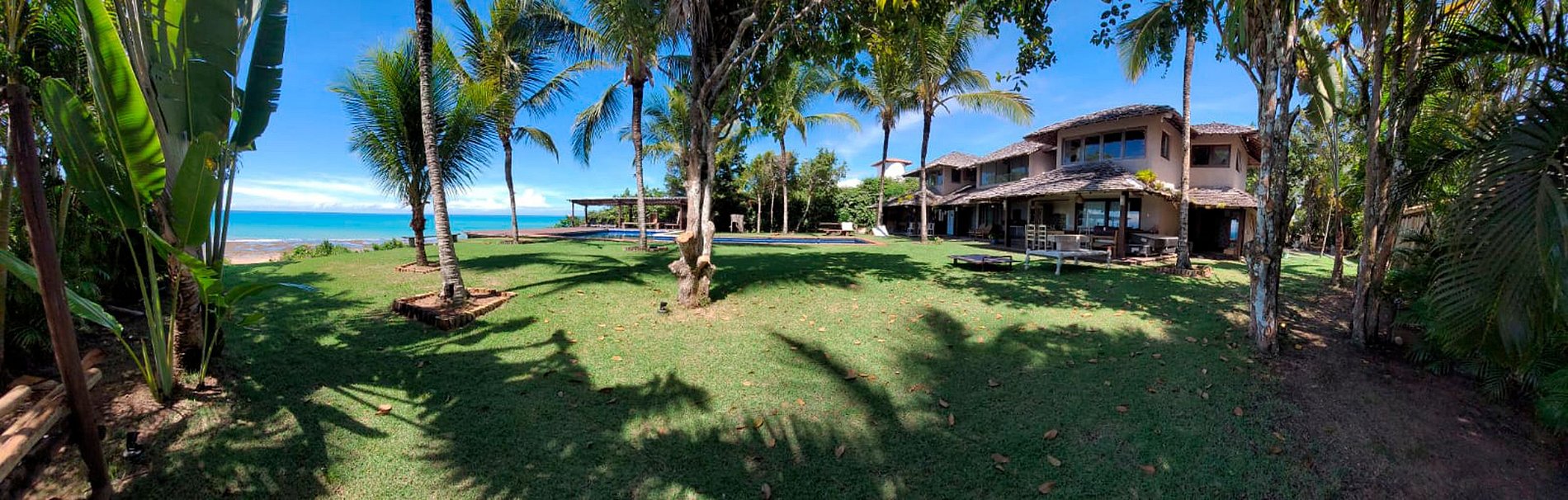 Situada en lo alto de la colina, en una parcela de 4200 metros cuadrados. La propiedad tiene 500 metros de superficie construida. Dividido en piscina, casa principal con 5 suites y dos bungalows. Tiene capacidad para 15 personas. La casa está a 300 metros de la calle considerada la más encantadora de Brasil. Tiene 35 metros lineales de frente de mar, con un ángulo de casi 180 grados. La vista al mar es una de las mejores de Brasil.