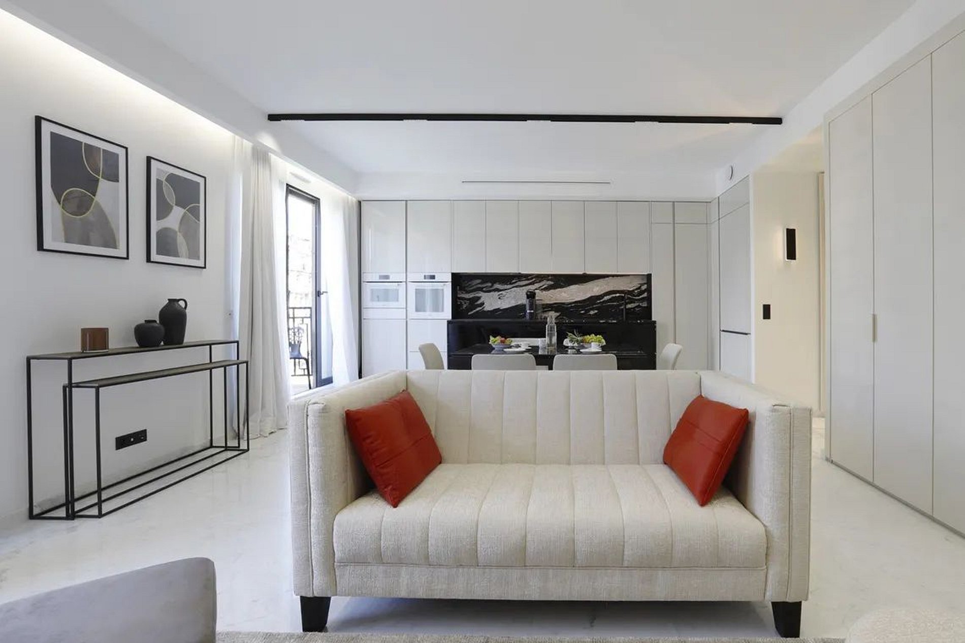 La decoración de este apartamento está cuidadosamente elegida, combinando elementos contemporáneos con un toque de sofisticación parisina. Los acabados de alta gama, los materiales de calidad y los detalles de diseño aportan una atmósfera elegante a cada habitación.