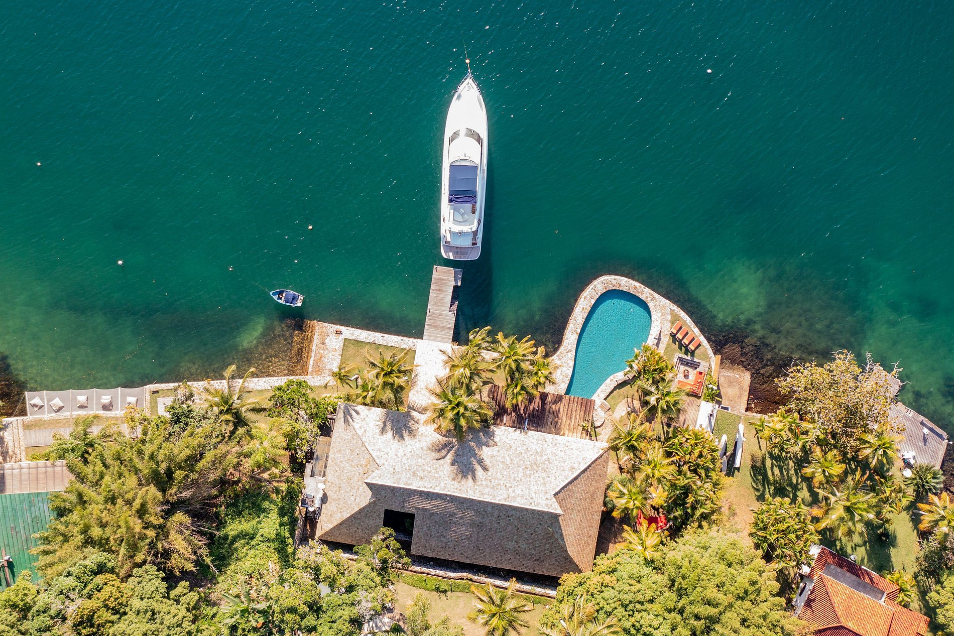 La isla cuenta con seguridad las 24 horas y una lancha rápida de 76 pies disponible para alquilar por R$ 13.750/día por un mínimo de 3 noches.