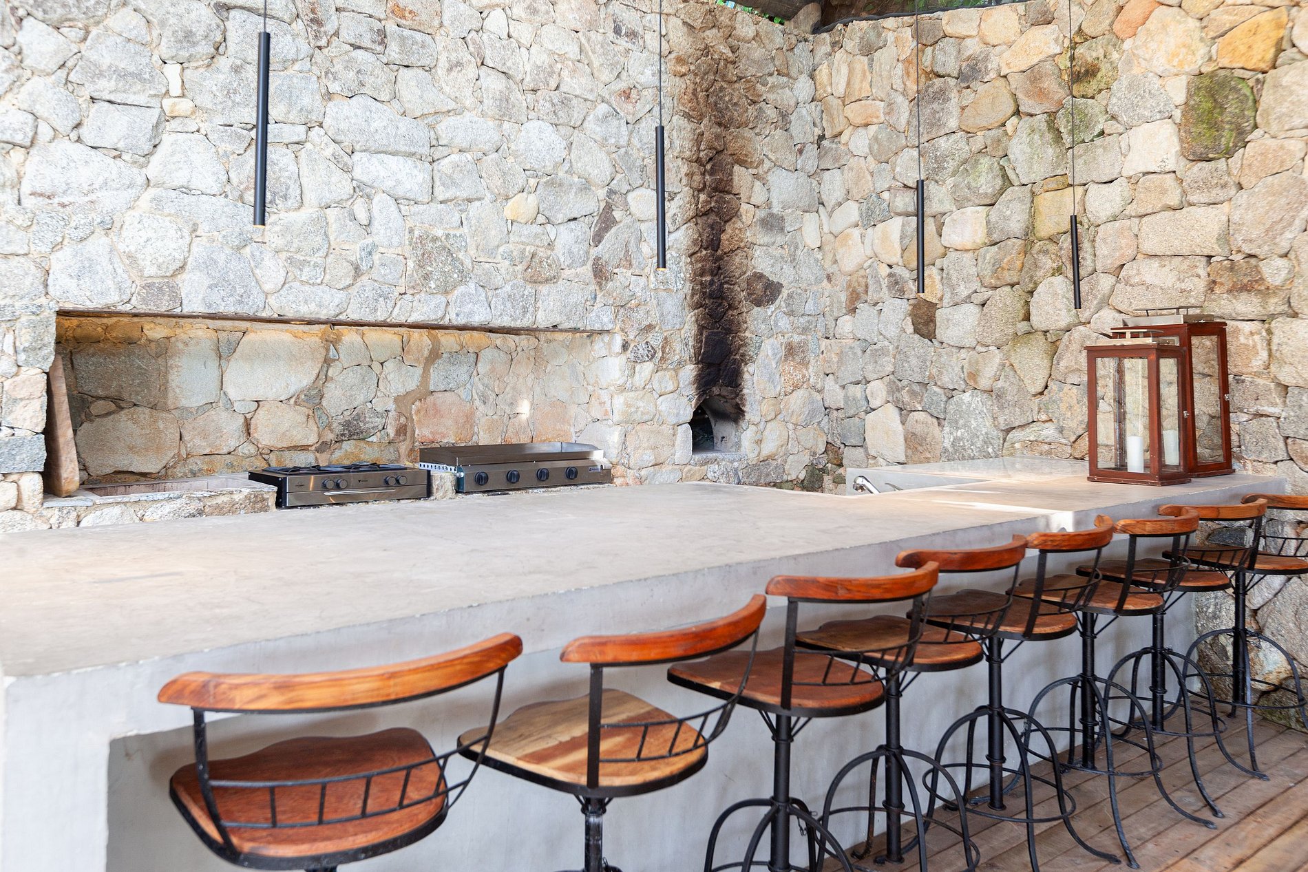 La casa tiene un stand up board, un excelente sistema de sonido a su alrededor, un horno de leña con un cocinero que prepara pizzas y pastas frescas.