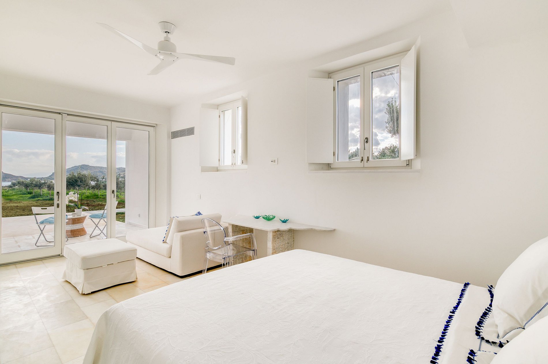El diseño moderno, elegante y minimalista del interior y el exterior crea un ambiente de máxima relajación para los visitantes. La villa está totalmente equipada y ofrece un confort absoluto, con coloridos jardines y vistas infinitas al mar: una experiencia de vacaciones verdaderamente inolvidable.
