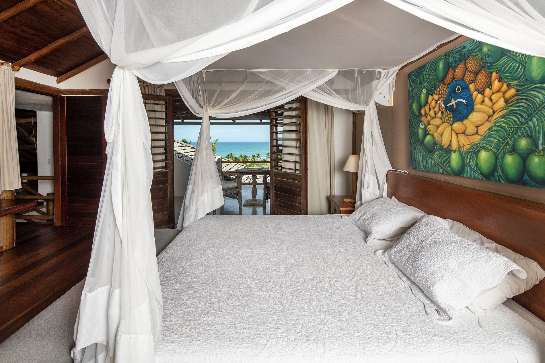 Master Suite: Cama King, aire acondicionado, mosquitera, closet, balcón amueblado con vista al mar.