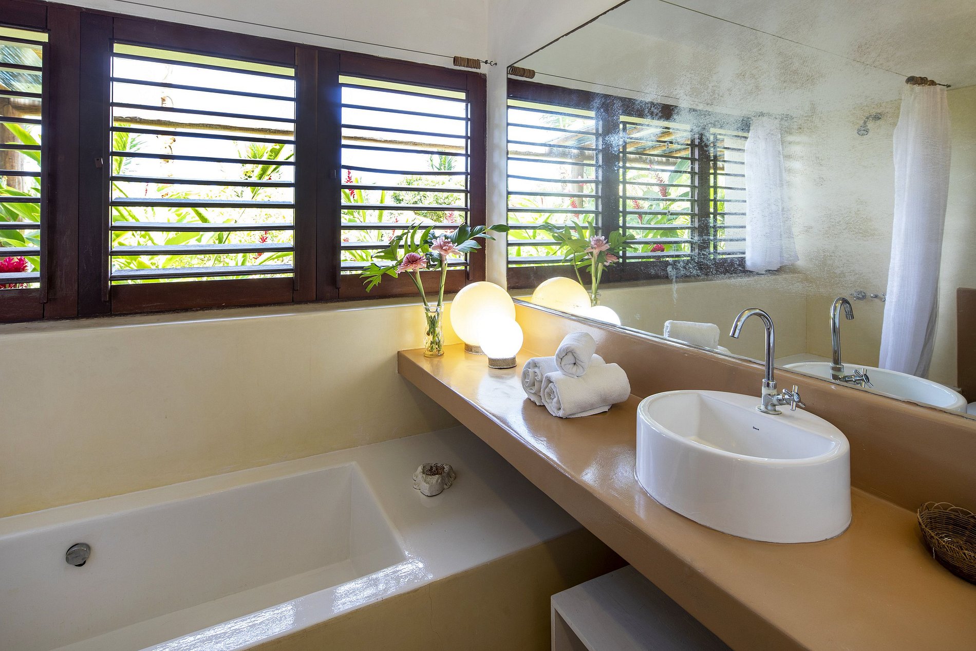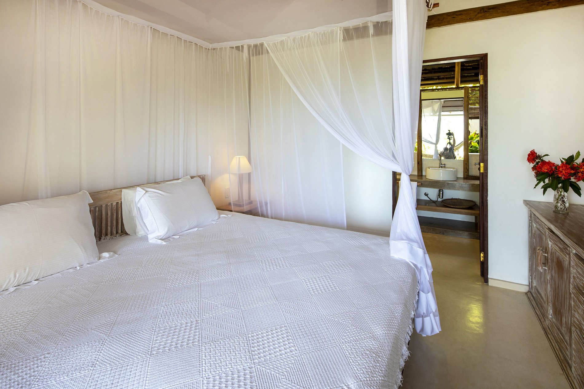 Suite 2: 2 camas viudas (o cama King), aire acondicionado, mosquitera, vista al mar y acceso al jardín.