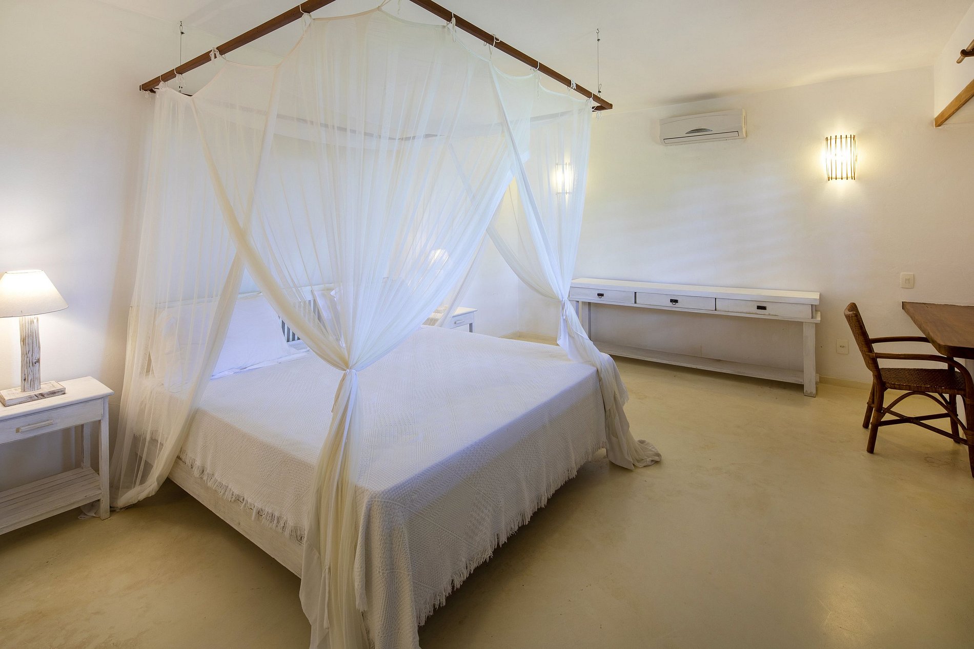 Suite 3: Cama King, aire acondicionado, mosquitera, vista al mar y acceso al jardín. Acceso independiente